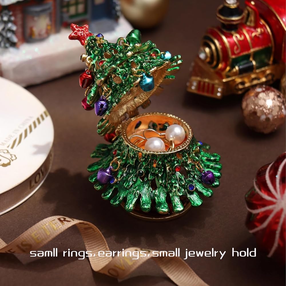 صندوق حلية مجوهرات شجرة عيد الميلاد من فاسلينو مع أجراس ملونة ومفصلات مرسومة يدويًا هدية لديكور المنزل (أخضر)