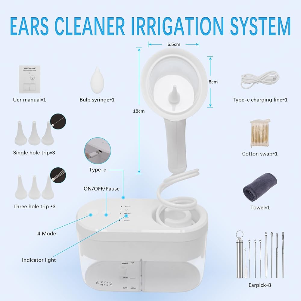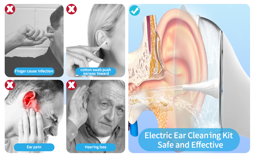 [تنظيف بثقة] تعمل مجموعة تنظيف الأذن الخاصة بنا على إزالة شمع الأذن بكفاءة وفعالية، بفضل نظام شطف تيار الماء الذي يعمل بالطاقة اللطيفة. يمكنك الوثوق بأداتنا للحصول على تنظيف آمن ونظافة، دون أي فوضى محرجة أو غير مريحة.