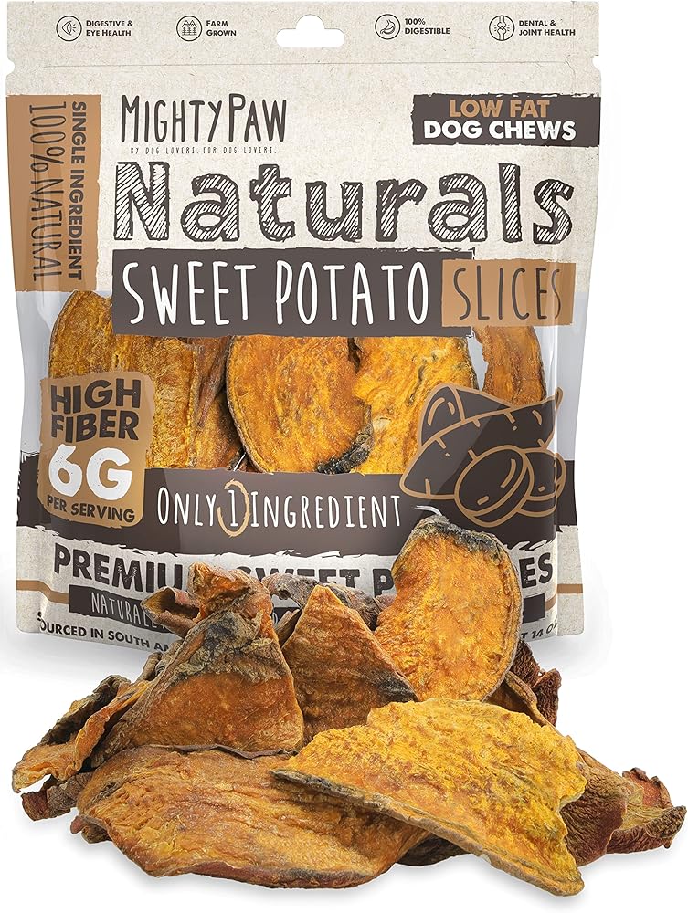 شرائح البطاطا الحلوة للكلاب من مايتي باو ناتشورالز | بطاطس حلوة مجففة طبيعية 100% للكلاب، بطاطا حلوة مجففة قليلة الدسم، مضغ البطاطا الحلوة للكلاب، بطاطا حلوة وجبات خفيفة للحيوانات الأليفة