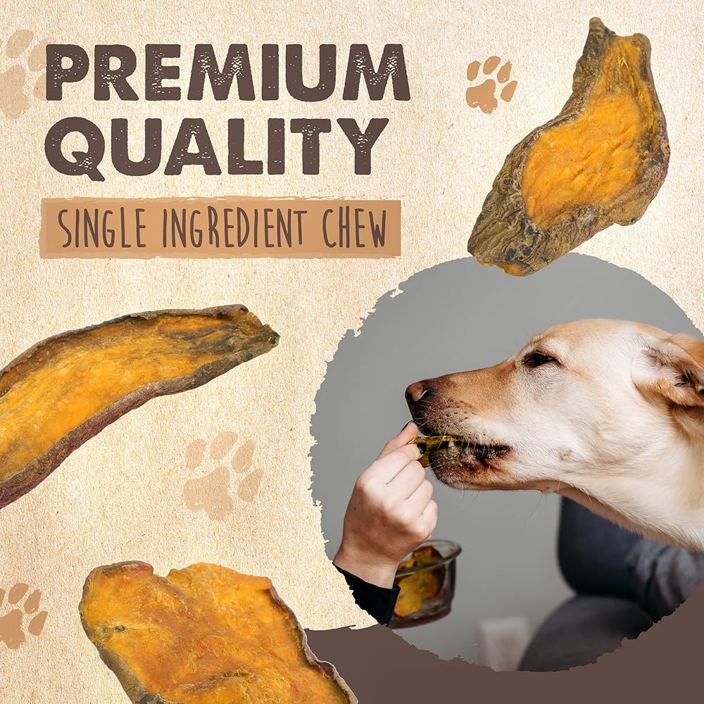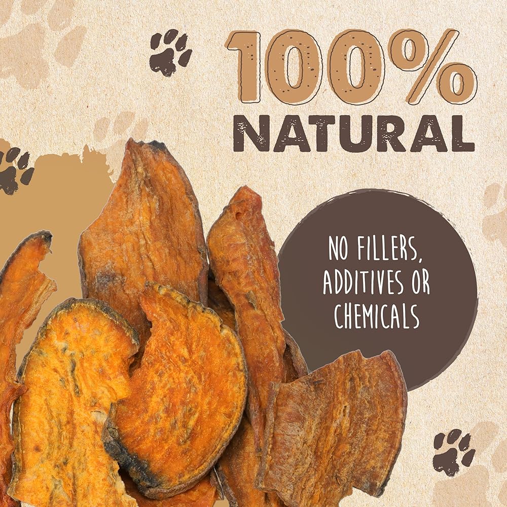 • طبيعي 100%، مكون واحد: علاجات البطاطس الحلوة للكلاب مصنوعة من مكونات طبيعية عالية الجودة فقط! باعتبارها مكونًا واحدًا، تعد هذه المضغات وجبة خفيفة صحية وحلوة لكلابك!