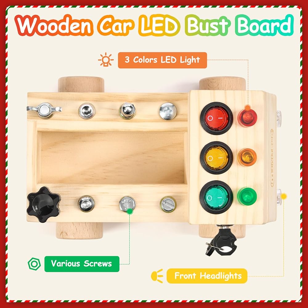 لوحة مشغولة من موريتيك مونتيسوري مع ضوء LED، مجموعة أدوات مفك براغي ألعاب للأطفال الصغار، ألعاب مونتيسوري الحسية الخشبية للأطفال بعمر 3 سنوات فما فوق