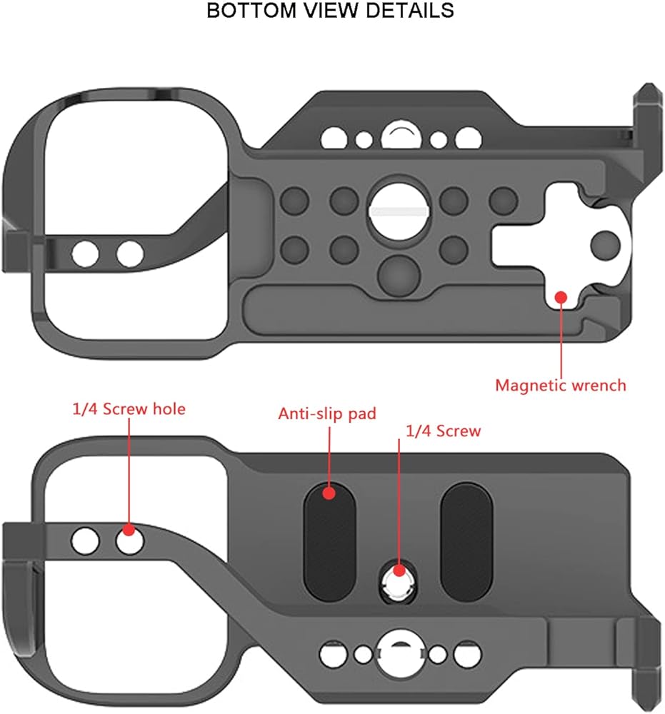 ❀ واجهة إطار قفص الكاميرا كاملة، بما في ذلك العديد من الثقوب الملولبة 1/4 انش 3/8 انش، وفتحات تحديد المواقع 1/4 انش، والأحذية الباردة وواجهات التوسع الأخرى، وهي أكثر ملاءمة للاستخدام.