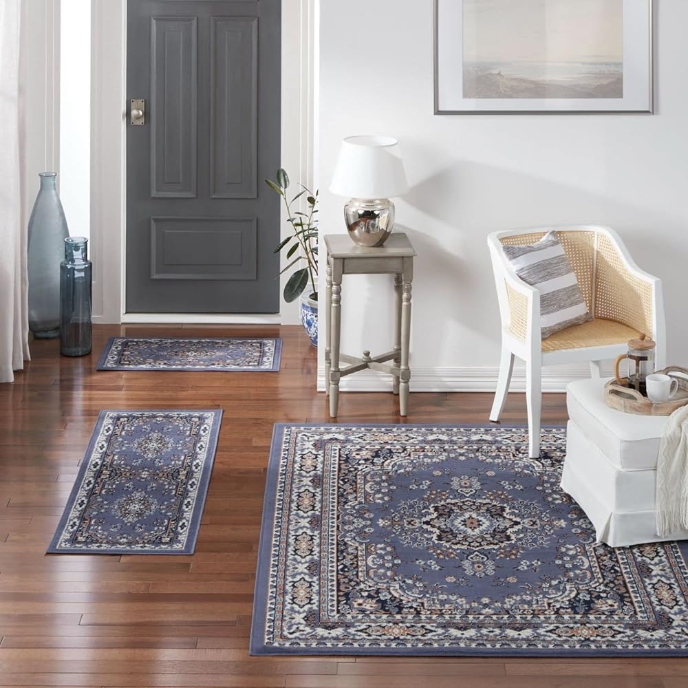 • HIGH QUALITY AND DURABILITY: A unique blend of fashion, function and design. Contemporary design that exceeds expectations with a high-quality construction for long lasting beauty. Stain, fade and fray resistant.SIZES FOR EVERY SPACE: Each rug set includes a 4'11"x6'11" Area Rug, 1'8"x4'11" Runner and a 1'8"x2'8" Scatter to ensure the perfect size for each space
