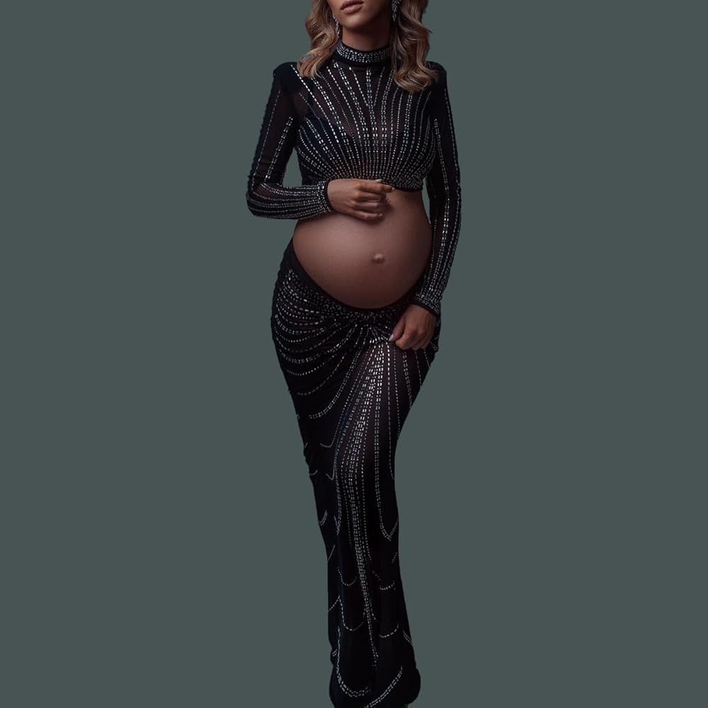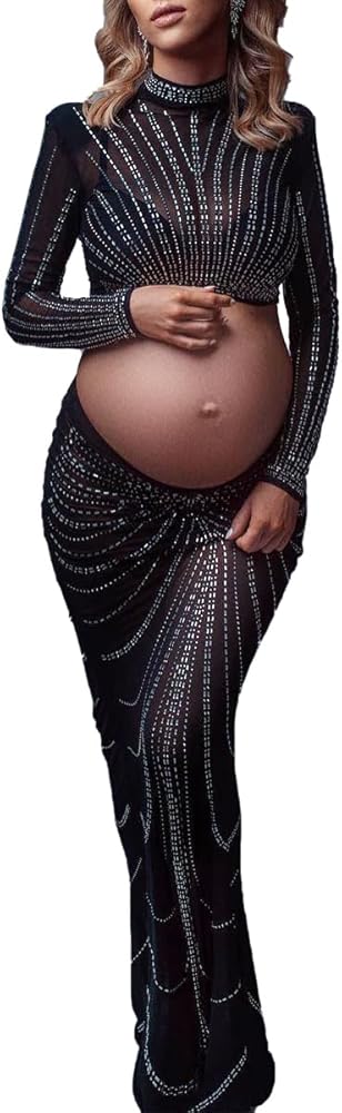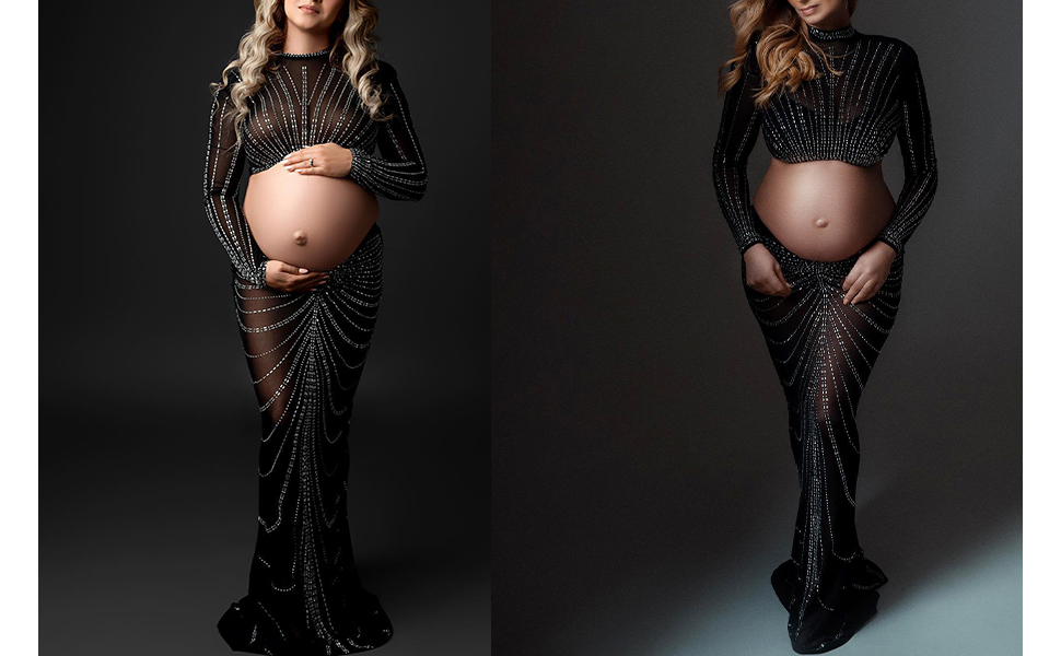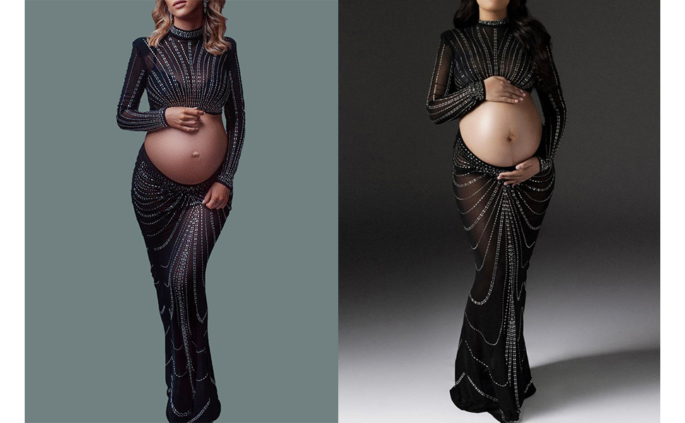الأمومة التصوير الفوتوغرافي حورية البحر ثوب طويل الأكمام عيد ميلاد حجر الراين فساتين الرقبة العالية جنسي ساخن الماس المجهزة تبادل لاطلاق النار الصورة