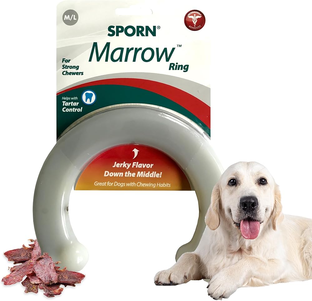 مارو رينج التي تقدمها شركة الحيوانات تقدم مضع جديد ورائع وفريد من نوعه. كجزء من مجموعة ماروبون، تُتحتفظ هذه العظمة على نفس المعايير العالية. مارو رينج متين وقابل للمضغ مع نبات مقدد بطعم في الوسط والذي سوف يحفز كلبك أن يمضغ. هذا العظمة الدائرية متينة للغاية وتعمل كوسيلة رائعة لإزالة الجير وتنظيف الأسنان. يوصى بها للمضغ القوي.