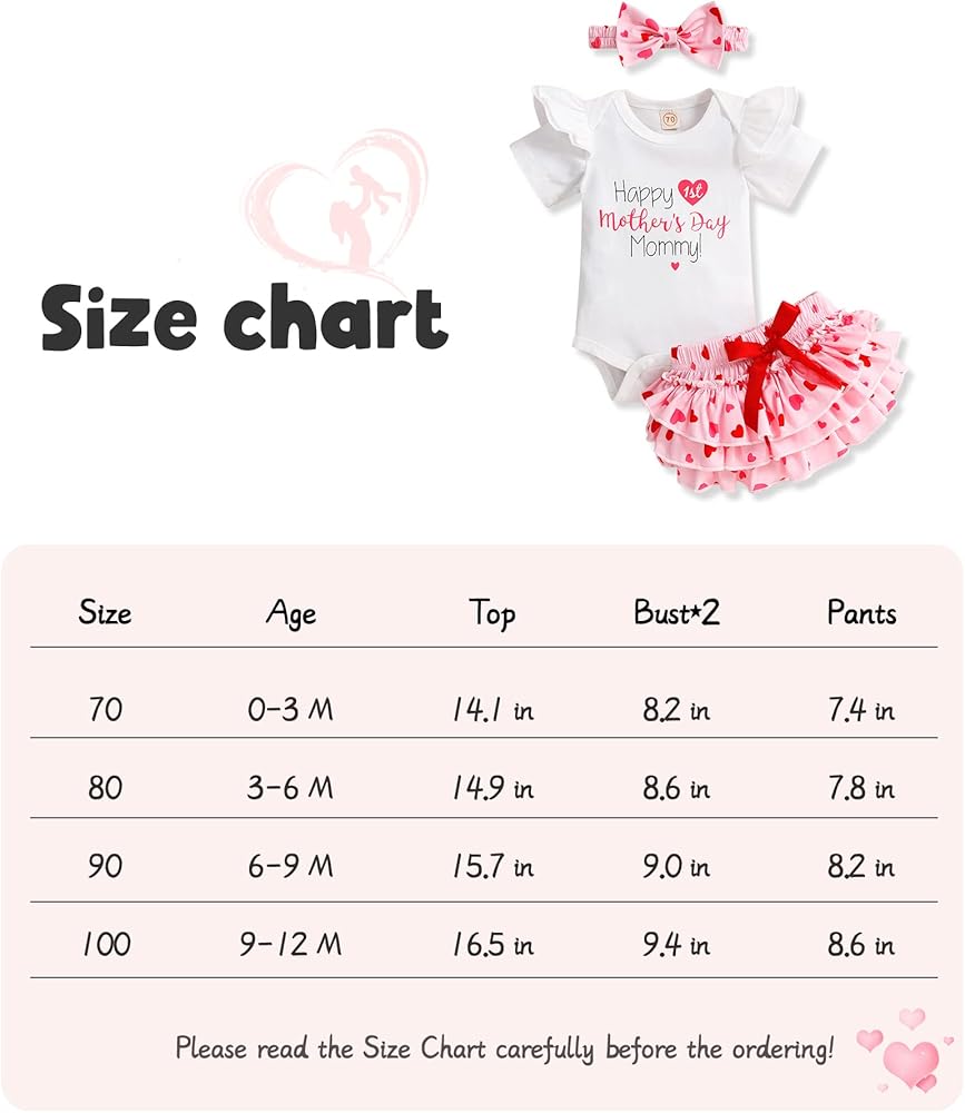 • Size: Mother's Day outfit for baby girl clothing set suitable for 0-3 months/3-6 months/6-9 months/9-12 months. Please check our product details in description.