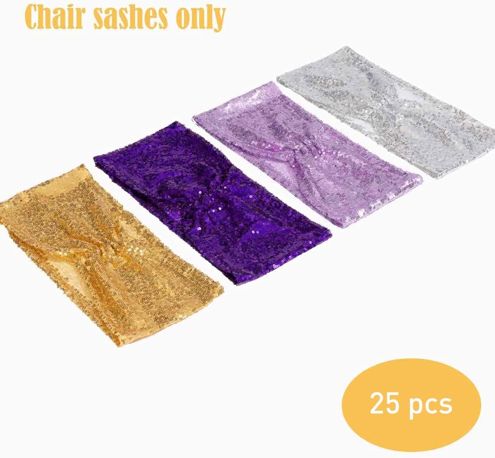 • جاهز للاستخدام: تم صنع أوشحة الكرسي الترتر هذه بالفعل في فيونكات وسهلة الاستخدام للغاية. أنت فقط بحاجة إلى وضعها على الكراسي ببساطة.