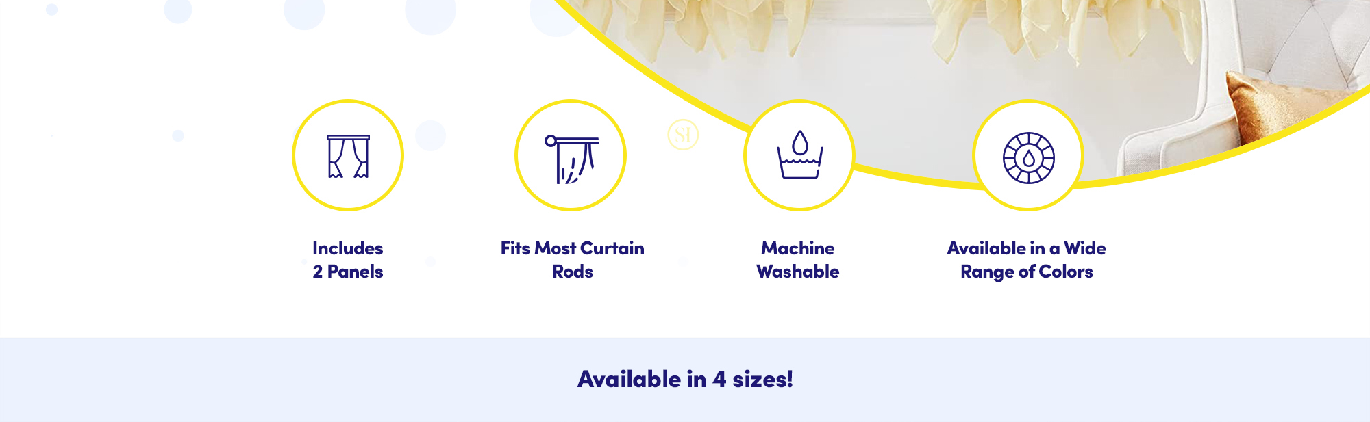 تحتوي كل مجموعة على لوحين ستائر، في حجم ولون اختيارك. يبلغ عرض كل لوحة 127 سم وطولها 160 سم أو 213 سم، حسب الخيار الذي اخترته. نختار هذه الأبعاد لتناسب معظم النوافذ وحتى الأبواب الزجاجية، حسب المظهر الذي تريده. متوفرة في مجموعة واسعة من الألوان من الألوان المحايدة إلى الجريئة، حيث تكمل لوحات ستائر النافذة المكشكشة الشفافة كل ديكور. صُممت هذه اللوحات المصنوعة من البوليستر المتين خصيصًا للأناقة. كل لوحة مفصلة بتصميم مكشكش فريد من نوعه سيضفي على منزلك مظهرًا أنيقًا على الفور!