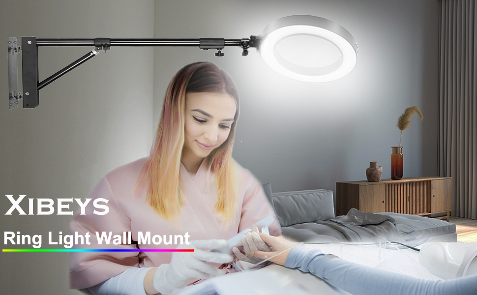 Xibeys Ring Light Wall Mount، الحد الأقصى للطول 51 بوصة / 130 سم ذراع ذراع الرافعة على الحائط مع قاعدة مثلثة للتصوير الفوتوغرافي في استوديو الفيديو فلاش ستروب، ضوء حلقة، عاكس مظلة، صندوق ناعم