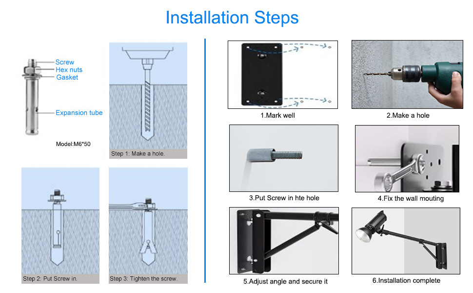 【توفير المساحة】يمكن تثبيت ذراع الرافعة المثبت على الحائط بسهولة على جدار صلب أو سقف، مما يساعد على المشي في الاستوديو الخاص بك، مما يجعل المساحة أكبر وخالية من الفوضى.
