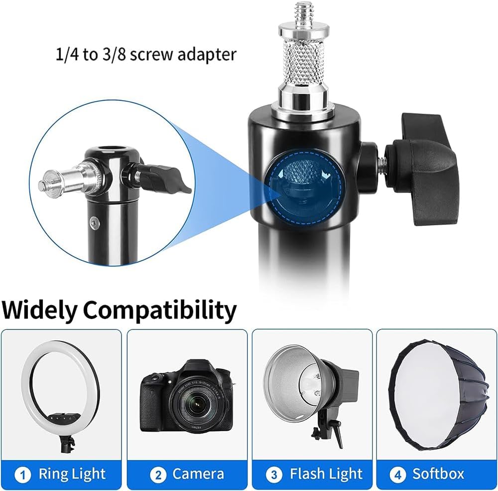 【استخدام واسع】مع برغي محول 3/8 و1/4، يعتبر حامل إضاءة الذراع الجداري هذا مثاليًا لتركيب المعدات على الحائط والسقف. متوافقة على نطاق واسع: أضواء ستروب فيديو الاستوديو، المصابيح الأحادية، الفلاش، الصناديق الناعمة، المظلات الناعمة، العاكسات، DSLR إلخ.