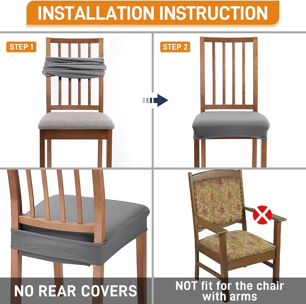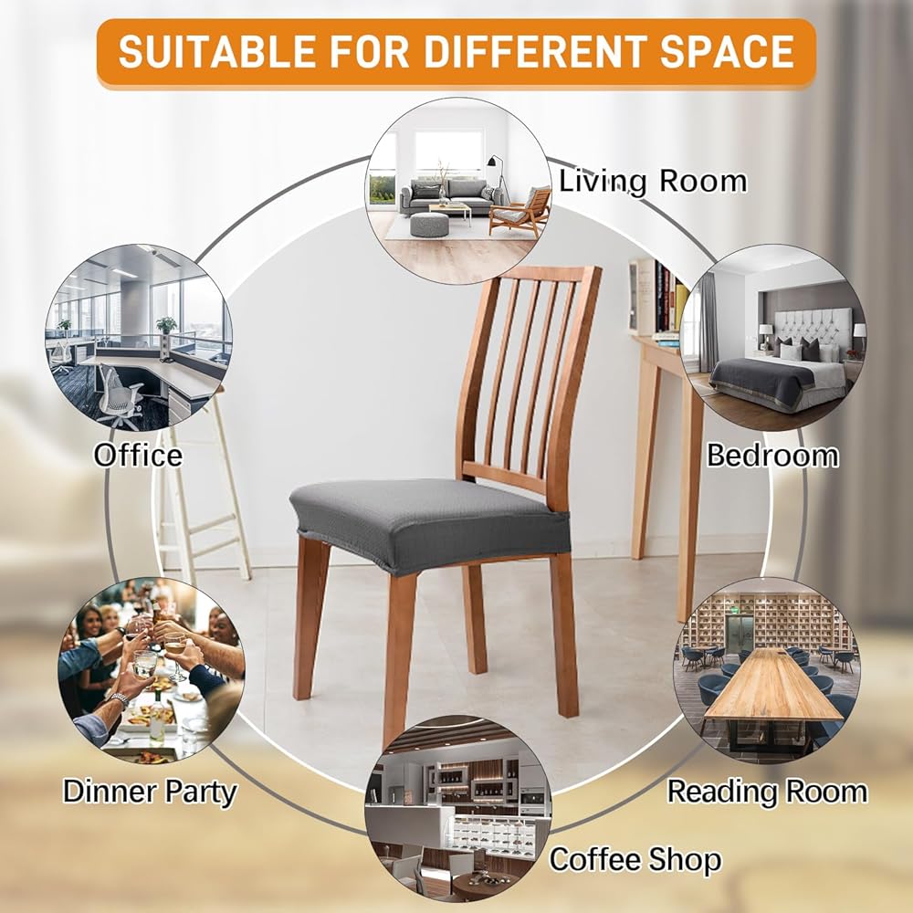 • حجم الكرسي المناسب: أغطية مقاعد كرسي طعام المطبخ تنطبق على طول وسادة المقعد: طول المقعد: 15-18 بوصة (38-45 سم)، عرض المقعد: 15-18 بوصة (38-45 سم)، سُمك المقعد: 1.5-4 بوصة (4- 10 سم).