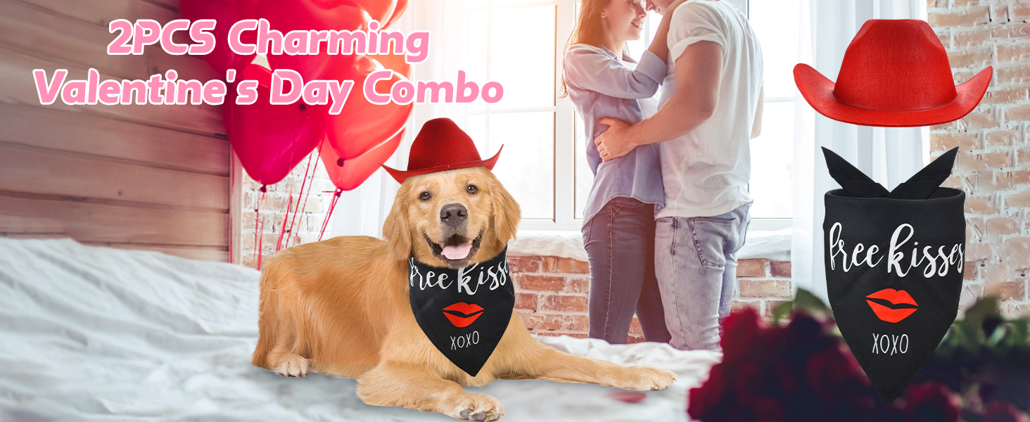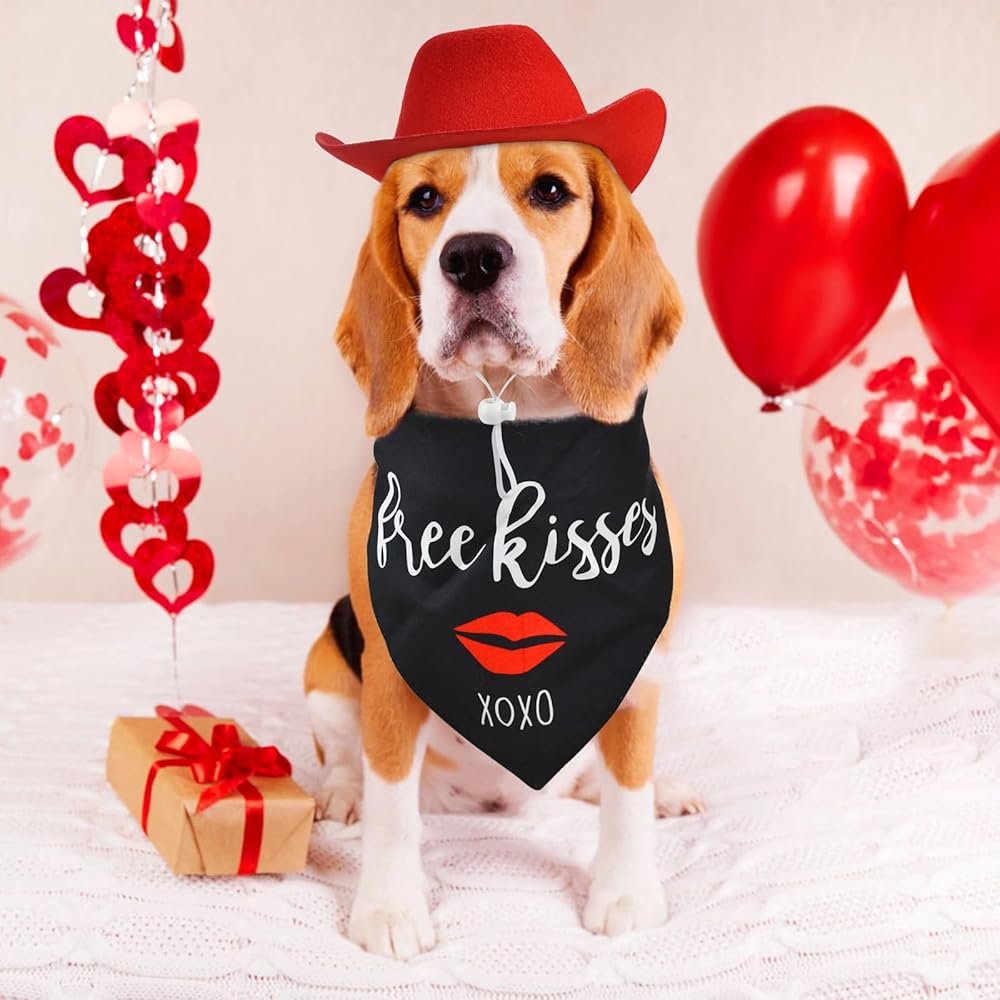 ❤【استخدام متعدد الاستخدامات】ليس فقط لعيد الحب، فهذه المجموعة رائعة للحفلات ذات الطابع الخاص أو حفلات الزفاف أو أي مناسبة حيث يريد كلبك أن يبدو بأفضل حالاته. إذا قمت بشراء مجموعة أزياء CooShou لعيد الحب للحيوانات الأليفة، فستحصل على قطعة واحدة من وشاح رقبة الكلب الأسود المطبوع عليه شفاه حمراء وكلمات قبلة وقبعة رعاة البقر الحمراء.