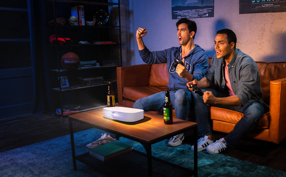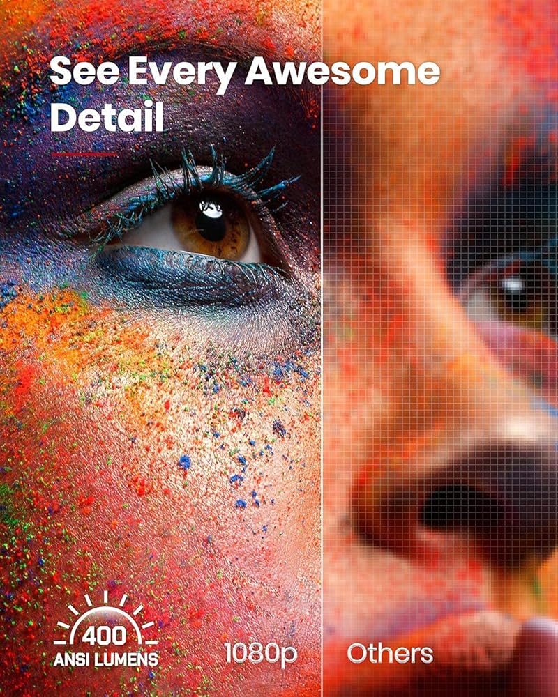 مرئيات سينمائية: استمتع بما يصل إلى 120 بوصة من الترفيه الرائع بدقة 1080 بكسل. مع تضمين HDR10 و400 لومن ANSI أيضًا، فإن كل ما تشاهده وتلعبه مليء بالتفاصيل والألوان الغنية. (يوصى باستخدامه في البيئات الخافتة.)