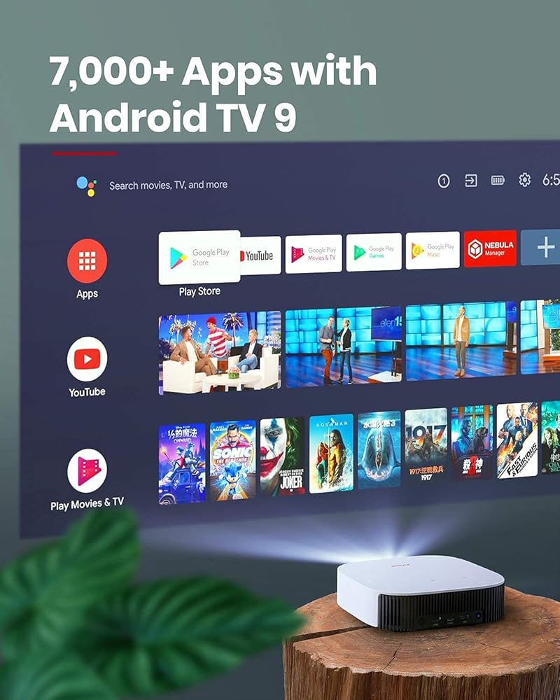 ترفيه مصمم خصيصًا لك: اختر من بين أكثر من 5000 تطبيق مع Android TV 9، بما في ذلك التطبيقات المفضلة مثل YouTube وHulu والمزيد. يمكنك أيضًا عكس المحتوى من هاتفك الذكي أو الأجهزة الأخرى إلى جهاز عرض Solar Portable 1080p.