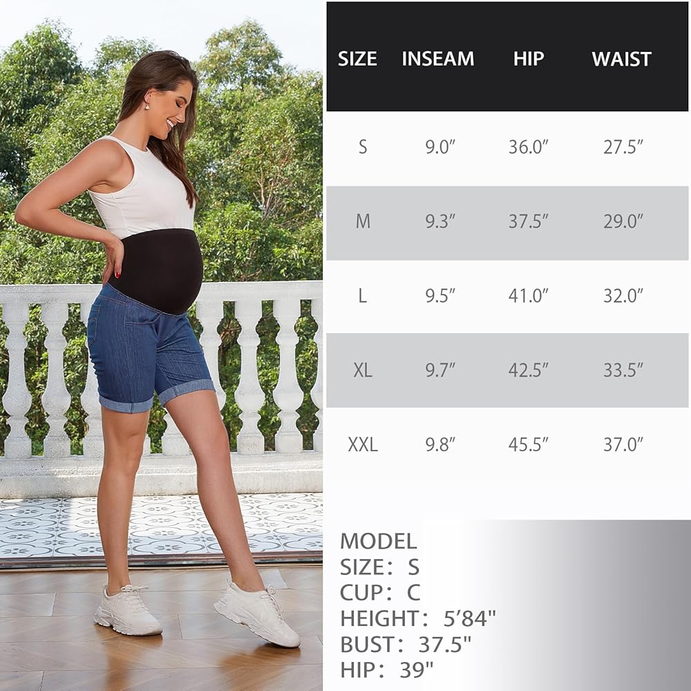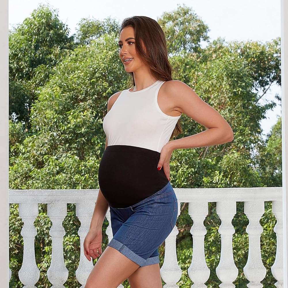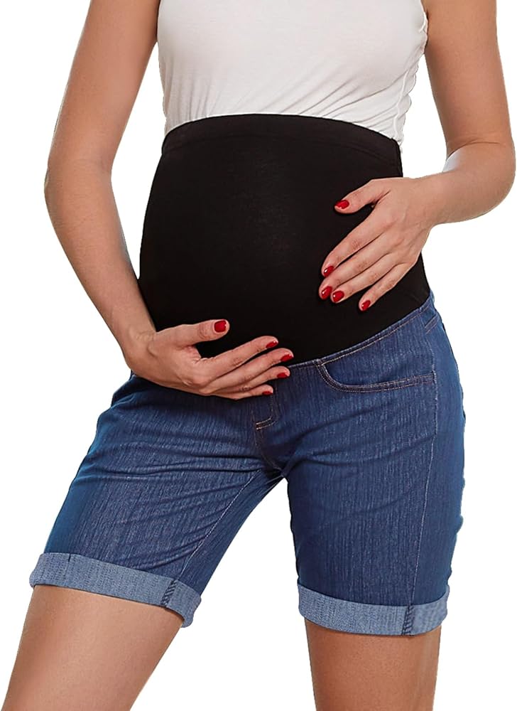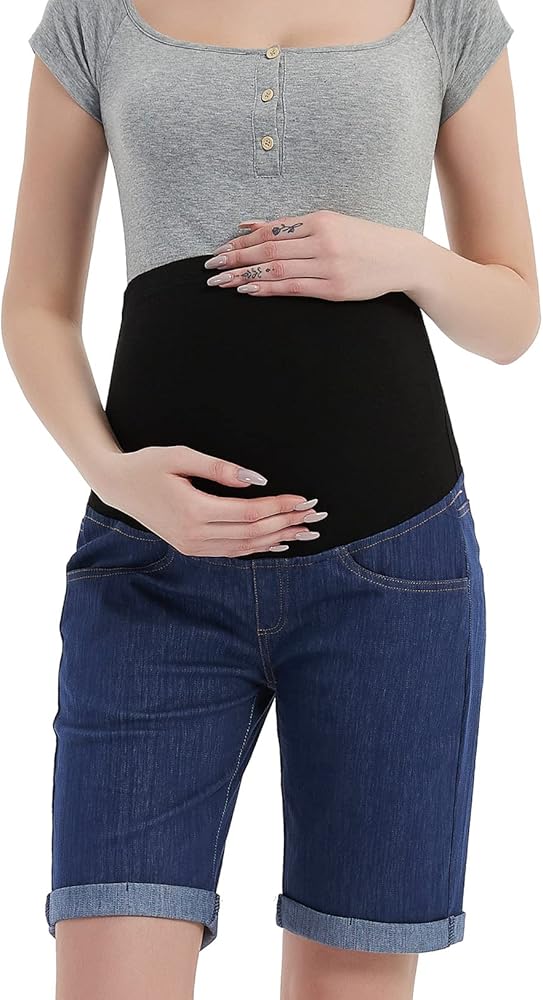 Bhome شورت جينز برمودا من قماش الدنيم فوق البطن بلوحة كاملة كاجوال للحمل