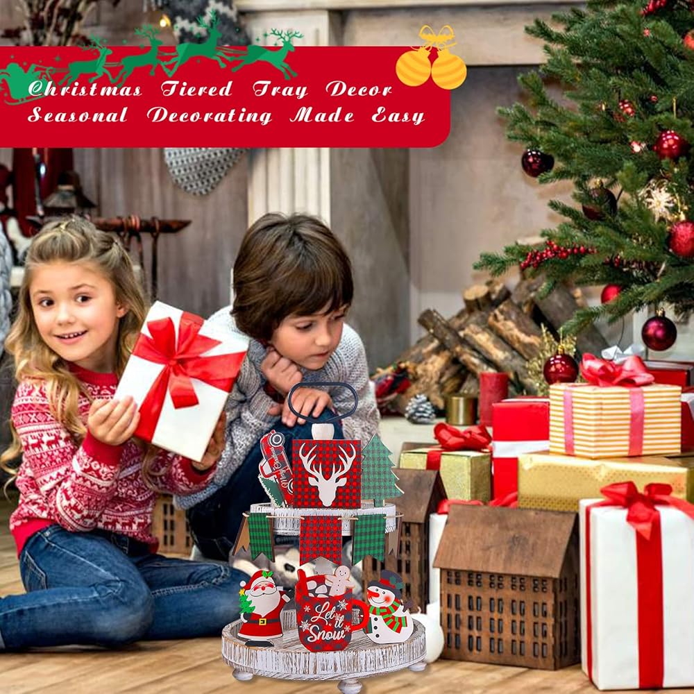مجموعة تزيين صينية عيد الميلاد المتدرجة - 13 قطعة طقم تزيين صينية داخلي، رجل الثلج، ندفة الثلج وشجرة عيد الميلاد زينة صينية ذات طبقات لتزيين الطاولة اليومية، المطبخ، غرفة المعيشة، بار القهوة