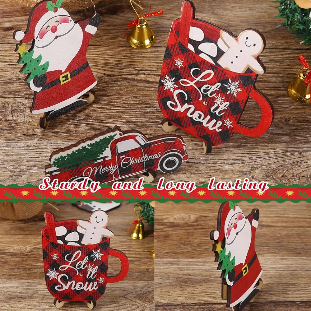 خشب عالي الجودة وحرفية دقيقة: ديكور الصينية ذو طبقات الشتاء مصنوع من الخشب الفاخر، وهو متين وناعم ومقاوم للتلف. يضمن الطلاء عالي الجودة أنماطًا واضحة ودائمة على علامة عيد الميلاد الخشبية. السطح الأملس الخالي من الاختباء يبدو رائعًا عند اللمس ولن يتشوه أو يتشوه.