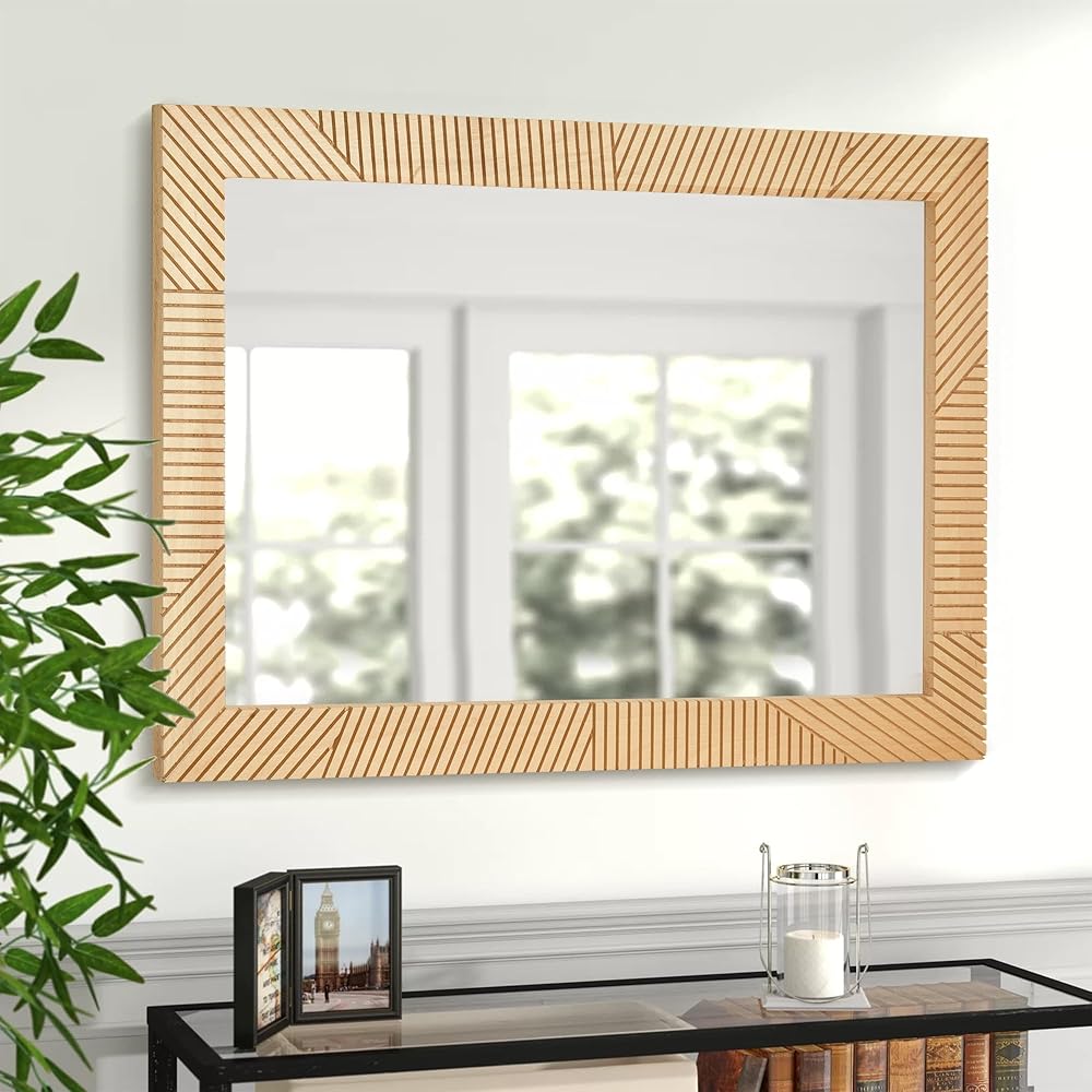 [Safety Tempered Glass Mirror]The mirror is distortion-free, ensuring that you get a clear and accurate reflection.And the tempered glass is its strength.it is hard to shatter.it has a sturdy frame and includes the hanging hook on the back, making it easy to install and secure on the wall.