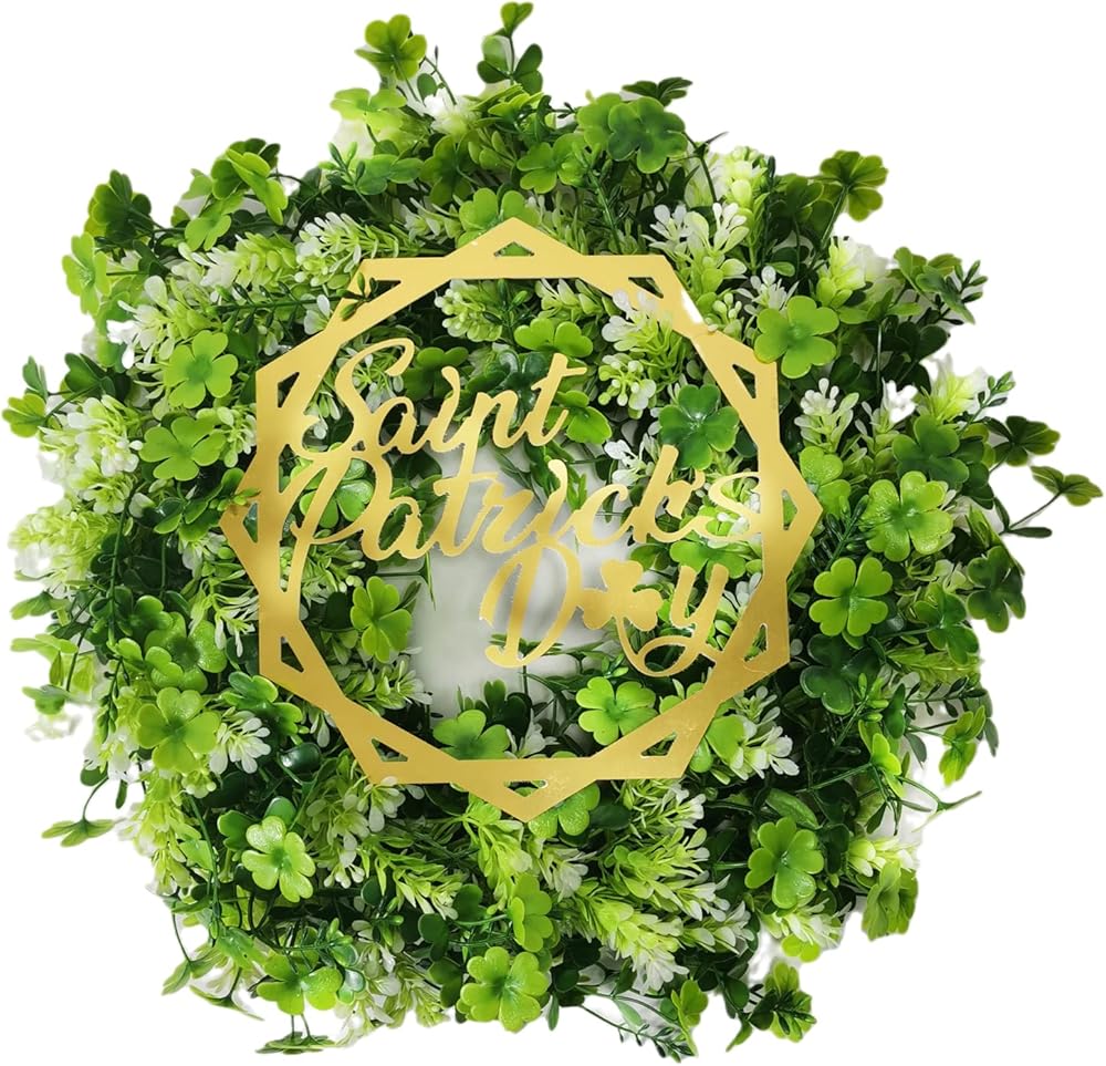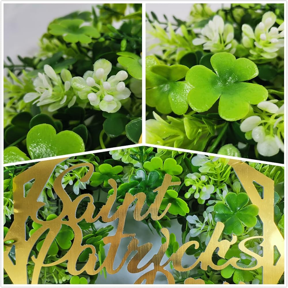 Novel Design: Our wreath is made in the classic colors of St. Patrick's Day, with a green wreath dotted with small white flowers and a gold St. Patrick's Day sign in the middle, a warm holiday accessory.
