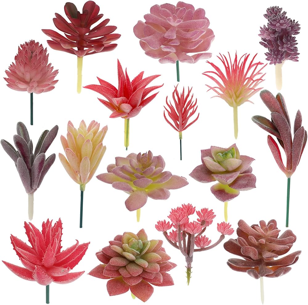 نباتات عصارية اصطناعية من Augshy، 16 حزمة من النباتات المزيفة نباتات عصارية صناعية صغيرة للحرف اليدوية، تشكيلة في أرفف غرفة المعيشة ذات الأزهار الوردية المتجمعة لتزيين غرفة النوم والحديقة والخارجية