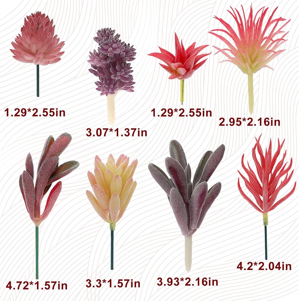 • تشمل العبوة - تحتوي العبوة على 16 قطعة من النباتات العصارية الاصطناعية الصغيرة والنباتات المزيفة، ولكن الوعاء غير متضمن في العبوة.