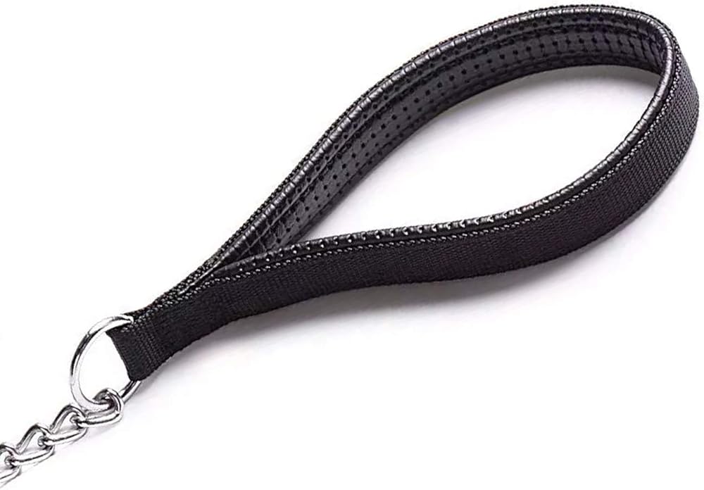بيتيري زمام سلسلة معدني للكلاب مطلي بالكروم مع مقبض مبطن ناعم للكلاب الكبيرة/ اسود