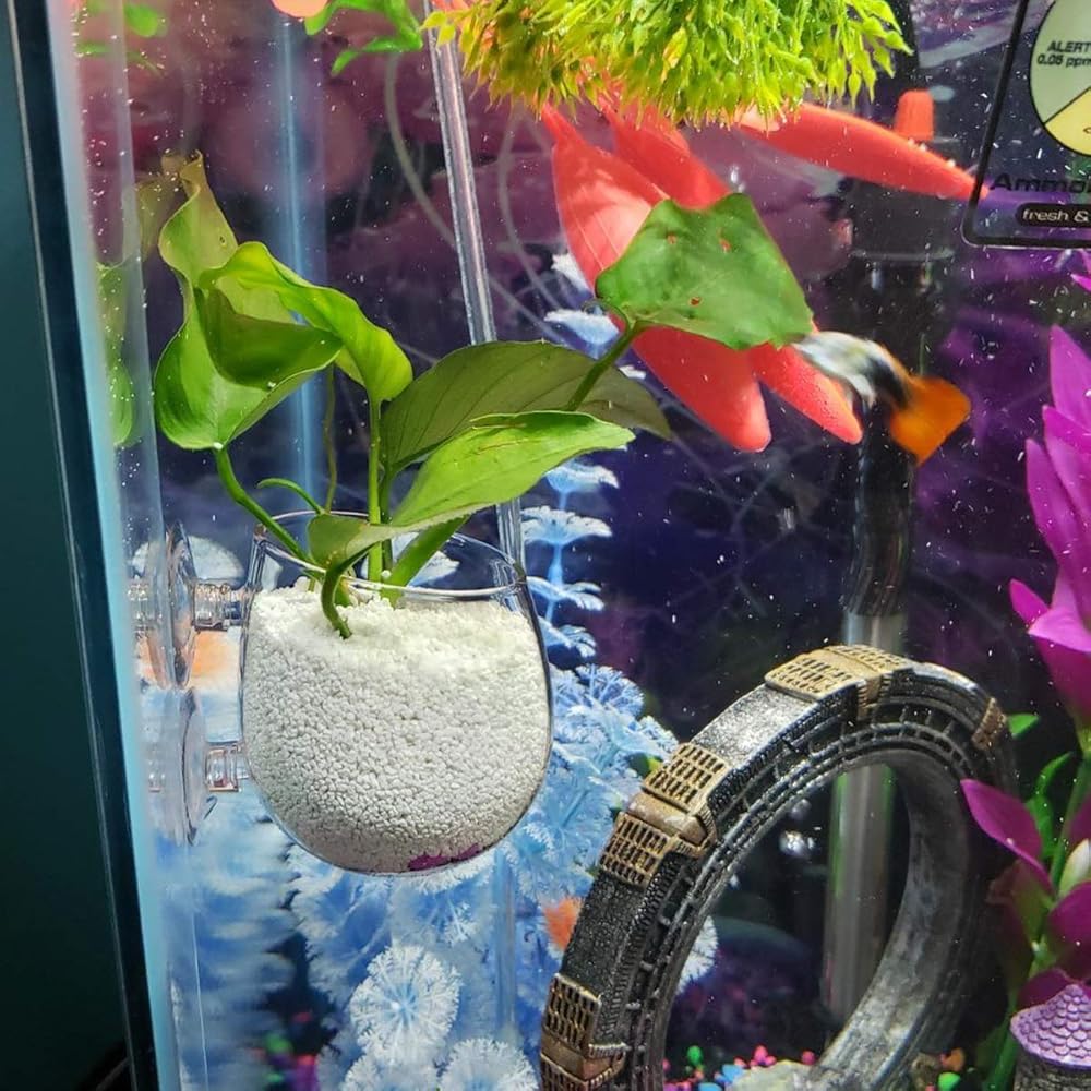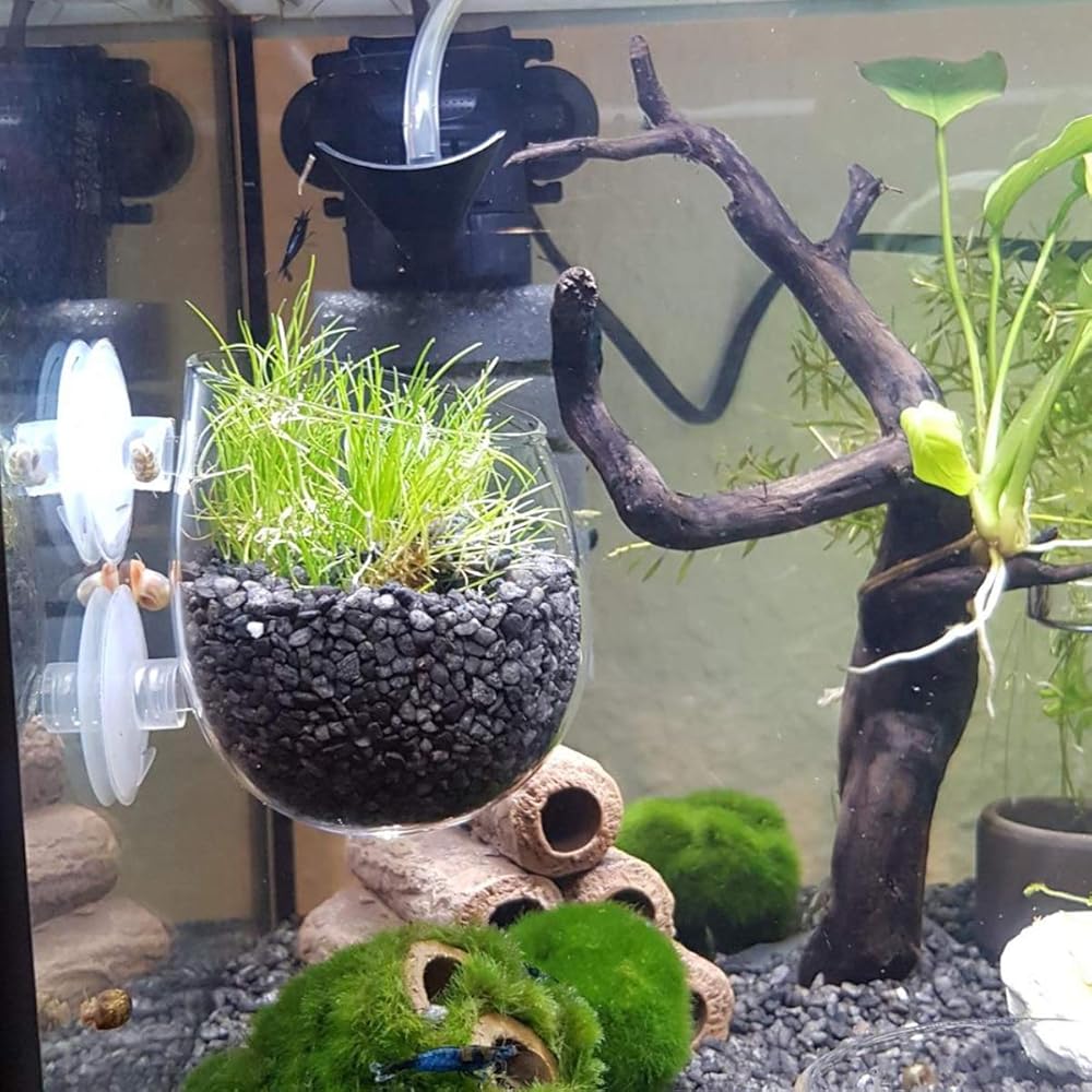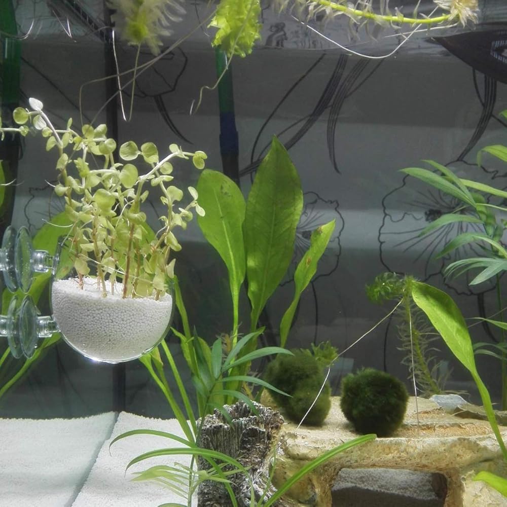 يأتي مع كوبين شفط قويين لكل وعاء نباتات، سهل النقل والتعليق بإحكام على حوض السمك، من السهل لصق كوب النباتات الزجاجي على جدار الخزان بإحكام.