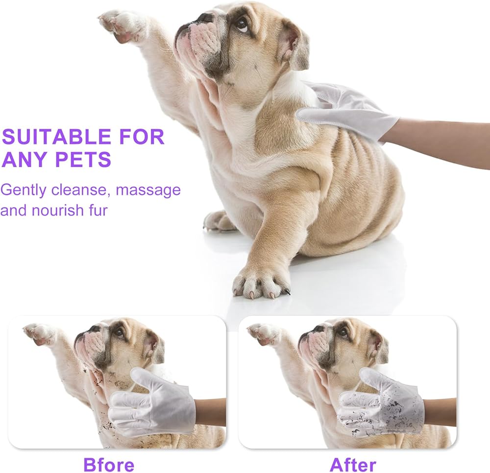 مناديل مبللة للحيوانات الأليفة من نوع القفازات: مناديل الماء سهلة الارتداء على اليد ولن تسقط بسهولة. تعتبر قفازات غسيل الكلاب هذه أفضل للإمساك بها وأكثر مرونة في التنظيف باستخدام المناديل المبللة العامة. يمكن استخدامها على كلا الجانبين.