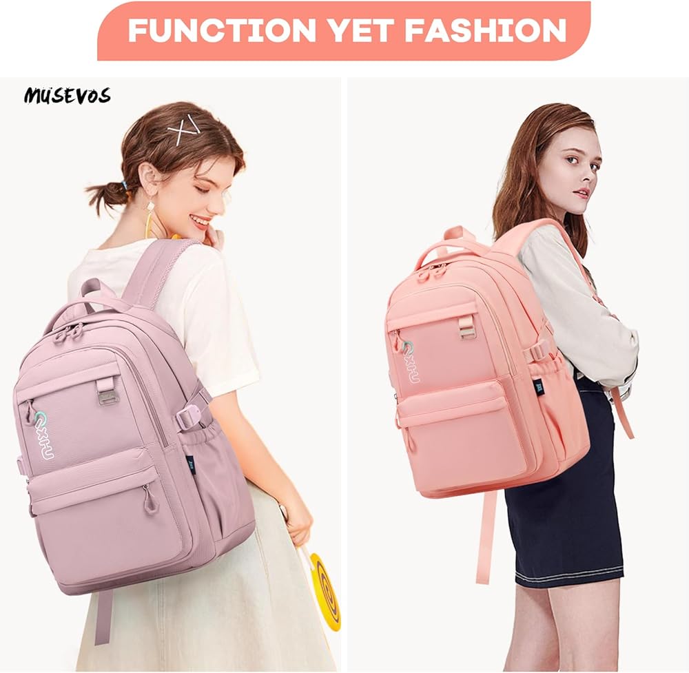 وظيفة ولكن عصرية: حقيبة ظهر كاجوال عصرية من MUSEVOS للمدرسة مع شعار أنيق فريد وتصميم ملحق معدني (كل حقيبة لها مظهر فريد وملمس شخصي)، حقيبة ظهر مدرسية بلون موحد تناسب أي مناسبة مثل المدرسة، الرياضة، السفر. وسوف تحصل على المزيد من الإطراء عند حملها.