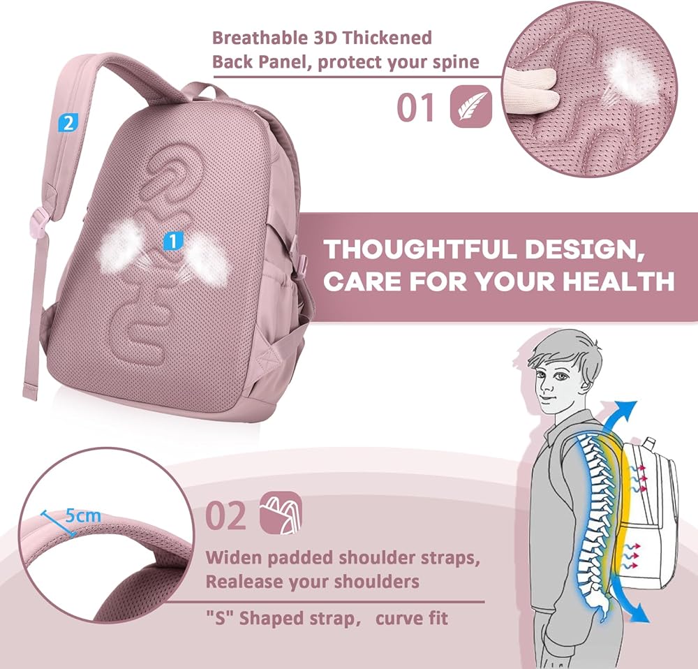 الرعاية الصحية: لن تشعر أبدًا بالتجربة حتى وأنت تحمل حقيبة الظهر MUSEVOS طوال اليوم. لأننا نعتمد مواد عالية الجودة متوافقة مع التصميم المتوافق مع البشر مما يجعلها خفيفة الوزن ومريحة للحمل. نحن نصنع حزامًا مبطنًا على شكل "S"، بعرض 5 سم وأكثر سمكًا، كما أن اللوحة الخلفية المسامية مصنوعة من إسفنج عالي المرونة وجيد التهوية. كل هذه التفاصيل تخفف العبء كتفك وحماية عمودك الفقري.