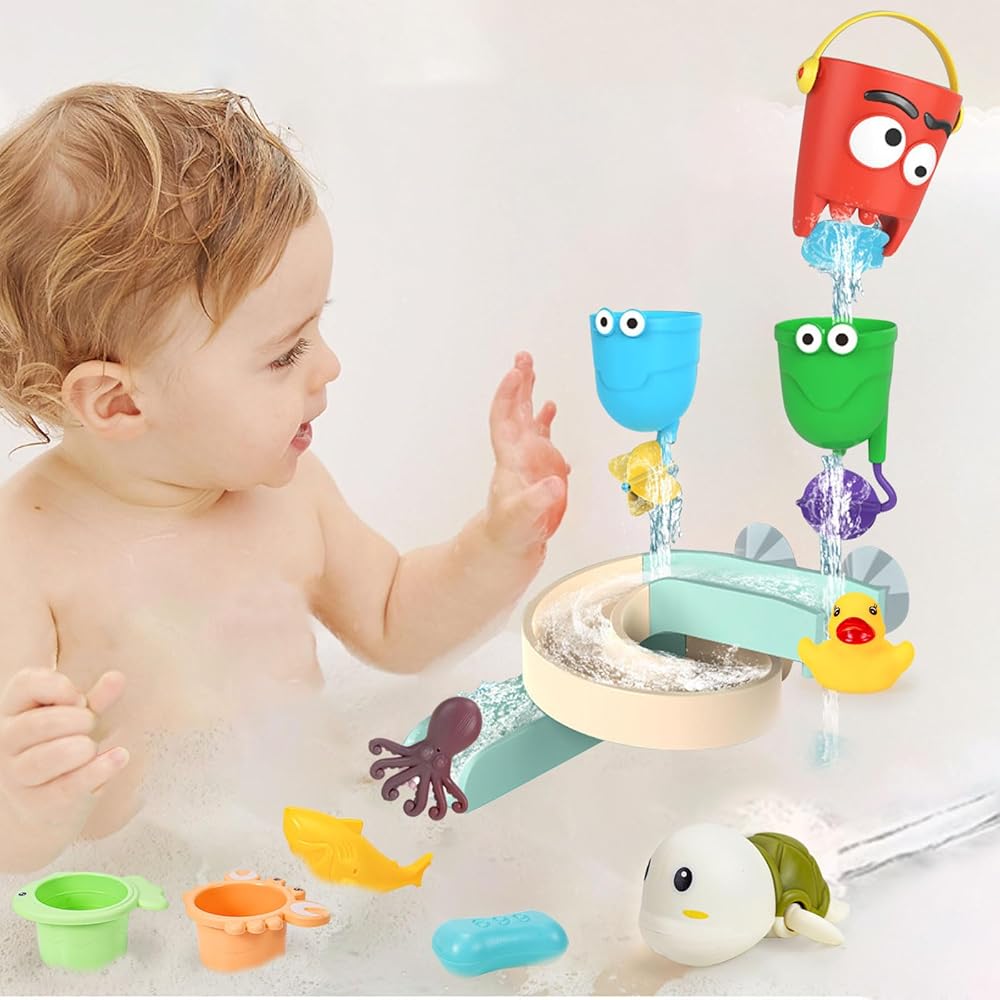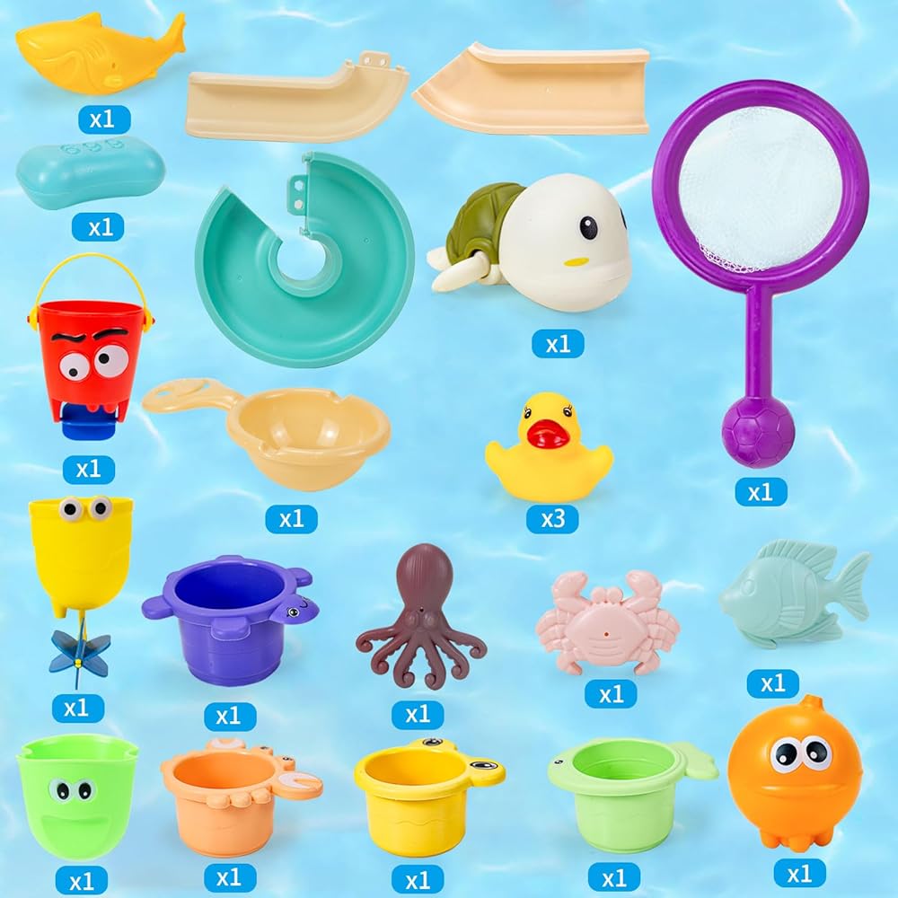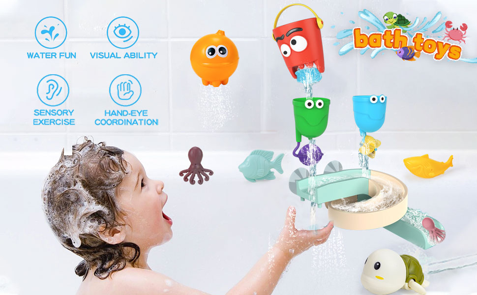 【رائعة لهدايا ألعاب الاستحمام للأولاد والبنات】 ألعاب الاستحمام يحبها الأطفال الصغار عند الاستحمام. مجموعة ألعاب الحمام الخاصة بنا مناسبة للأطفال من 1 2 3 4 5 6 فتيات للعب في الحمام، وهي هدية مثالية للأطفال الصغار الذين تزيد أعمارهم عن 36 شهرًا.