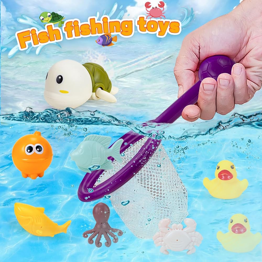 ألعاب الحمام للأطفال من عمر 1 إلى 3 سنوات، 25 قطعة من ألعاب الحمام للأطفال الصغار من سن 2 إلى 4 سنوات، ألعاب الحمام للأطفال من عمر 6 إلى 12 شهرًا تتضمن ألعاب الحيوانات العائمة | شبكة صيد السمك | مسار الحائط | السباحة الساعة