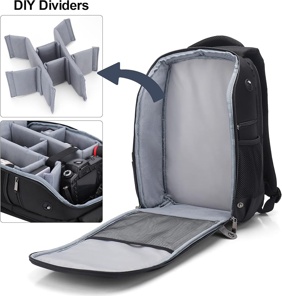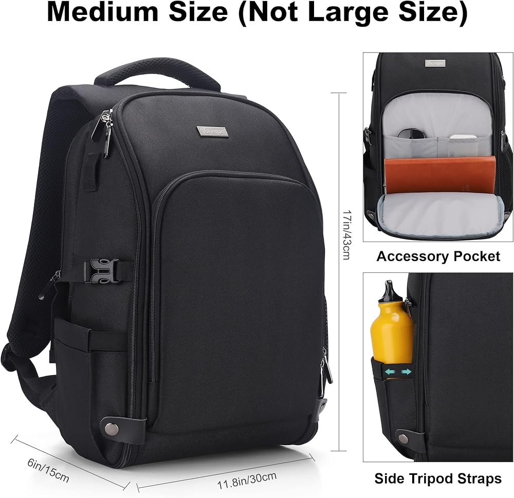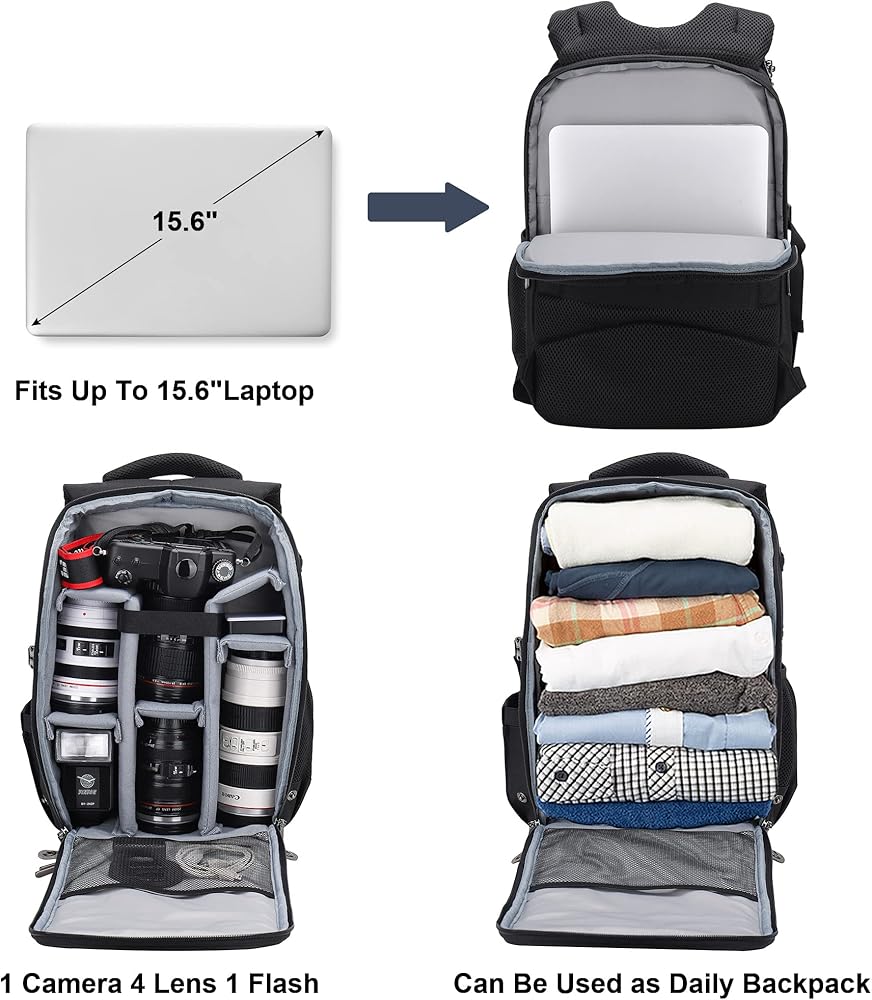 ✅【خدمات مثالية】: تم تصميم حقيبة الظهر للكاميرا متعددة الوظائف هذه للمصورين بشكل احترافي لكاميرات DSLR / SLR / بدون مرايا من العلامات التجارية المختلفة. متوافق مع نيكون D5600، D5300، D3500، D3400، D3300، D3200؛ متوافق مع Canon EOS Rebel T6، وT6i، وSL2 وغيرها من كاميرات DSLR ذات الحجم القياسي. ضمان لمدة عام على كل حقيبة كاميرا.