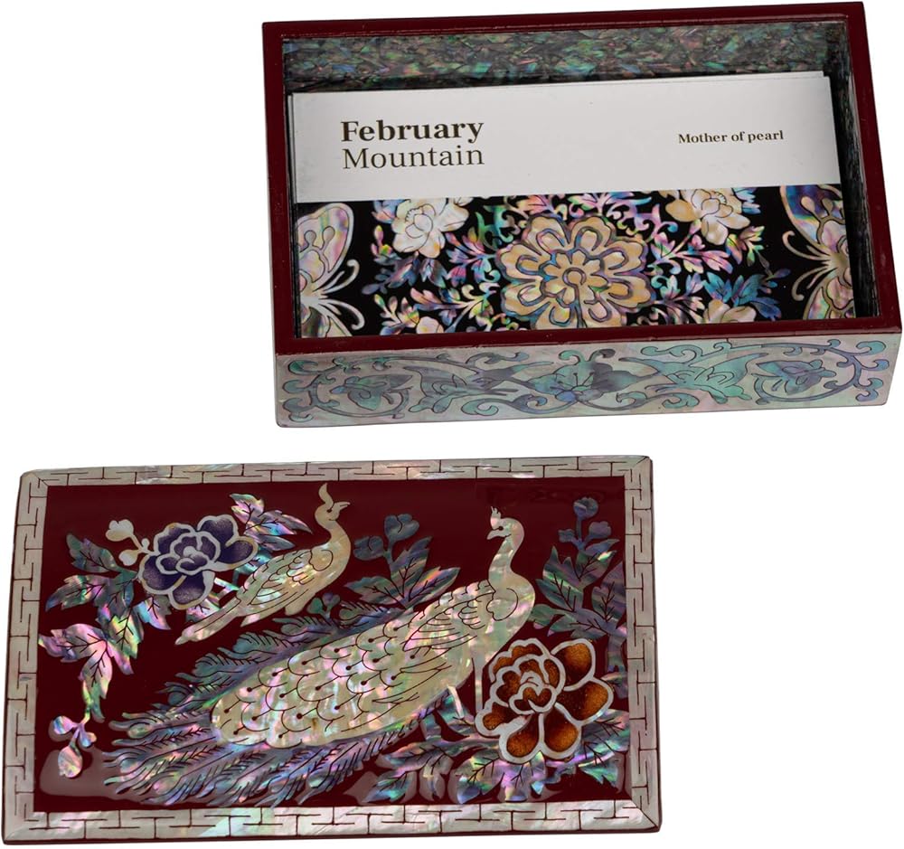 صناعة فائقة الجودة: تم تصميم صندوق ملحقات جبل فبراير باستخدام خشب عالي الجودة مع لمسة نهائية فريدة، وهو عرض رائع لـ Najeon-Chilgi، وهو شكل من أشكال الفن الكوري التقليدي الذي يستخدم عددًا من تقنيات التشطيب الرائعة بما في ذلك الخشب مع لمسة نهائية لامعة طبيعية و أم اللؤلؤ على السطح.