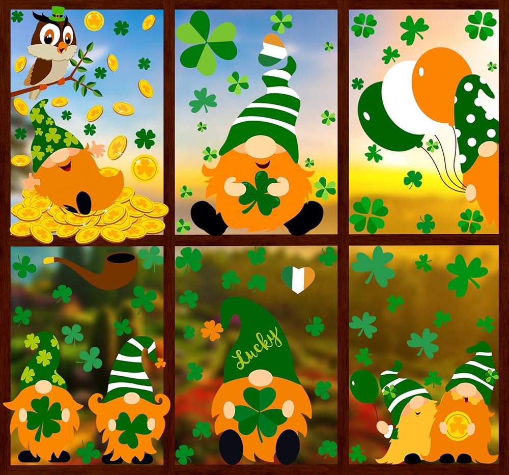 محتويات العبوة: سوف تحصل على 8 ملاءات 100 قطعة من ملحقات ملصقات النوافذ لعيد القديس باتريك، ورجل عجوز ذو لحية، ونفل، وعملة معدنية وما إلى ذلك، تلبي احتياجاتك لتزيين منزلك عندما يأتي عيد القديس باتريك.