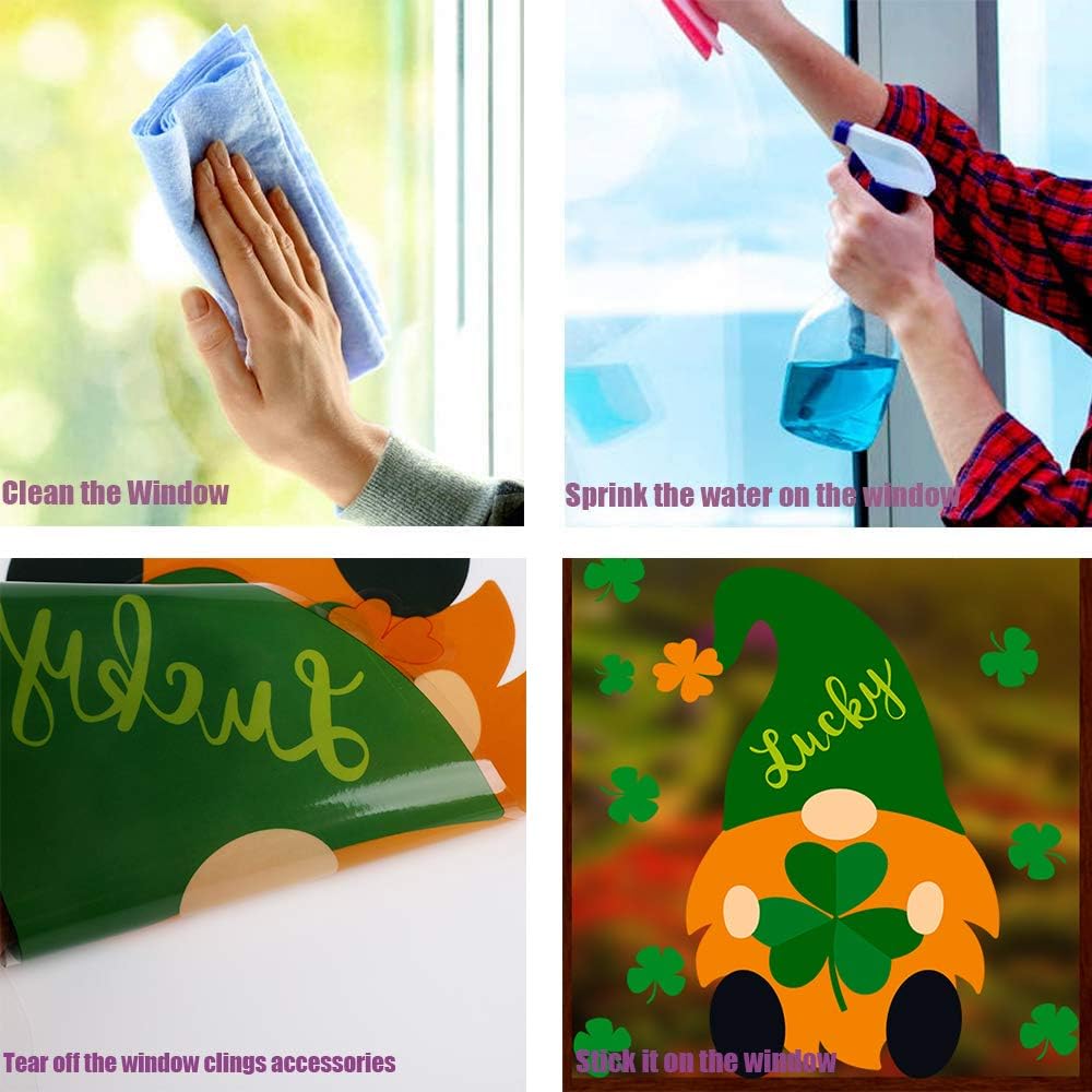 المواد: إكسسوارات ملصقات النوافذ الأيرلندية هذه مصنوعة من مادة PVC الفاخرة. قبل لصق الملصقات على النوافذ، عليك رش بعض الماء عليها ومسحها وتنظيفها، وبهذه الطريقة يمكن أن تعمل بشكل جيد لفترة طويلة.