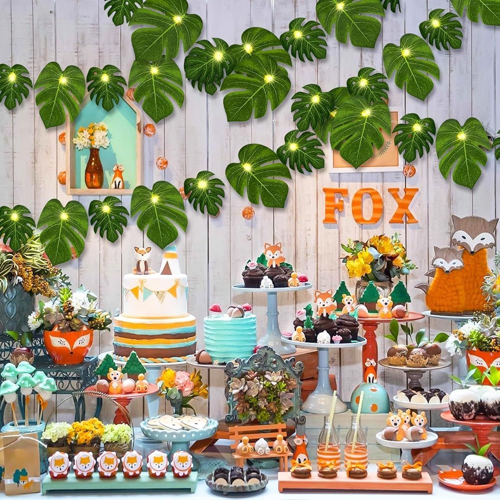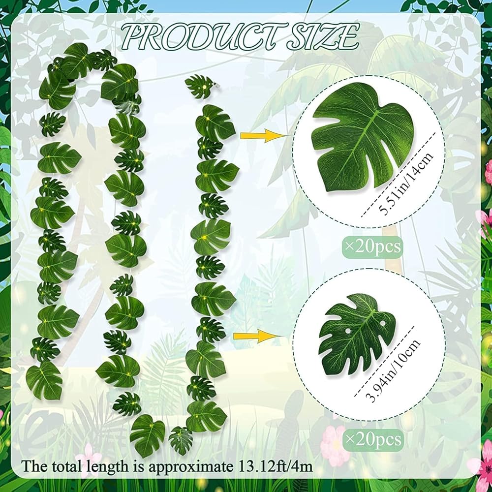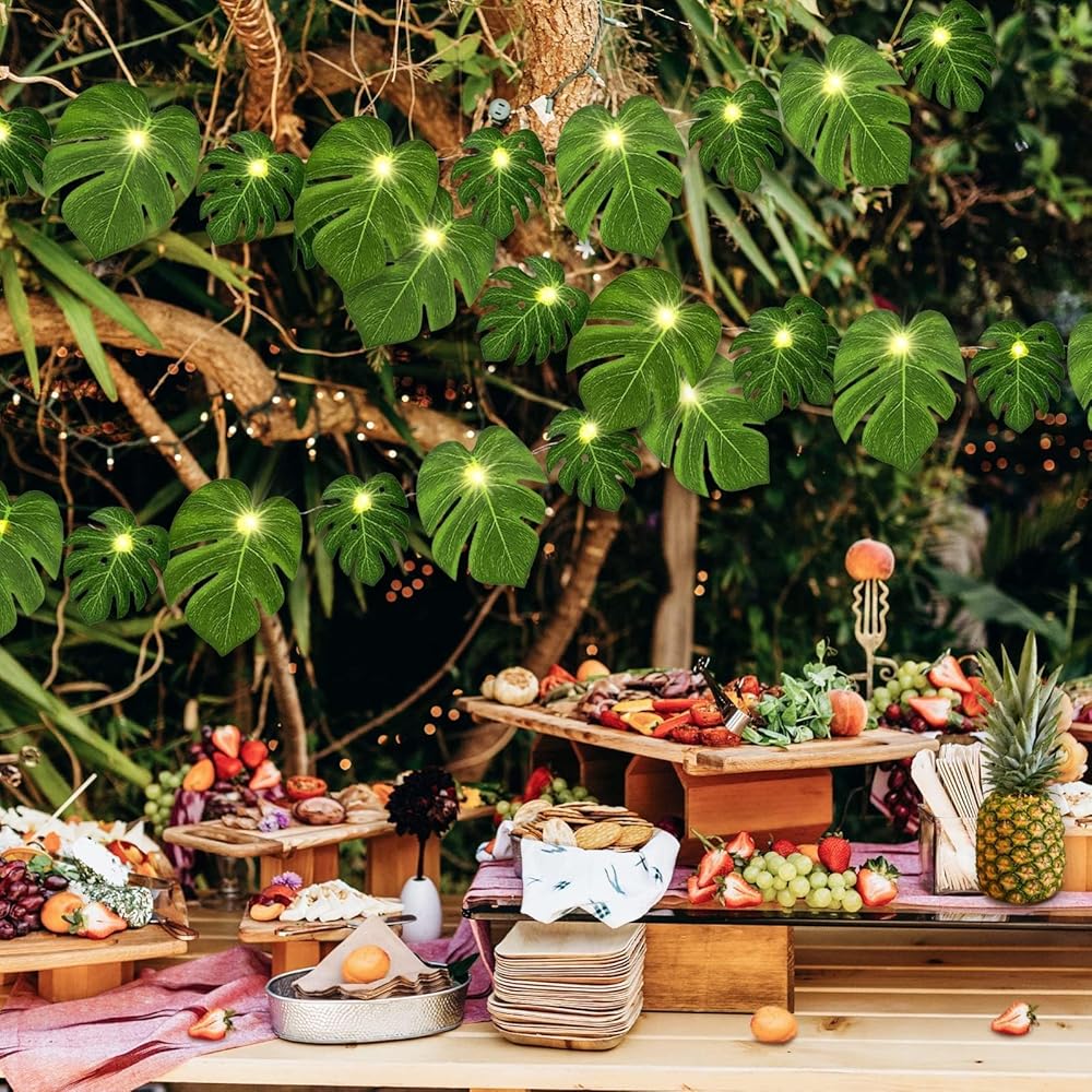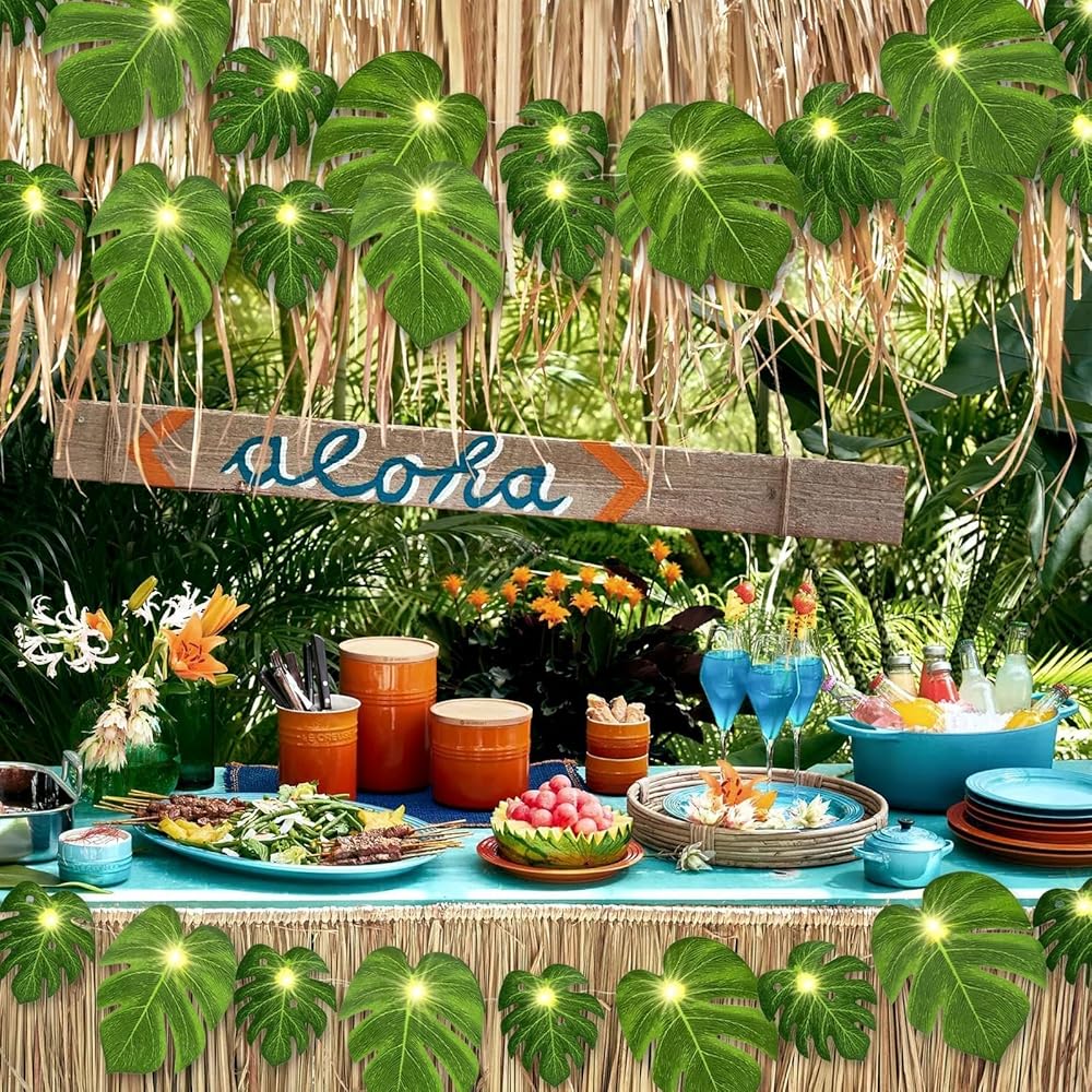 ديكور حفلات هاواي على شكل أوراق استوائية - 40 مصباح LED من أوراق نبات مونسترا، ضوء معلق من أوراق نخيل الروطان الاصطناعي من أجل لوازم تزيين الحفلات ذات الطابع الاستوائي في هاواي لو ألوها الغابة