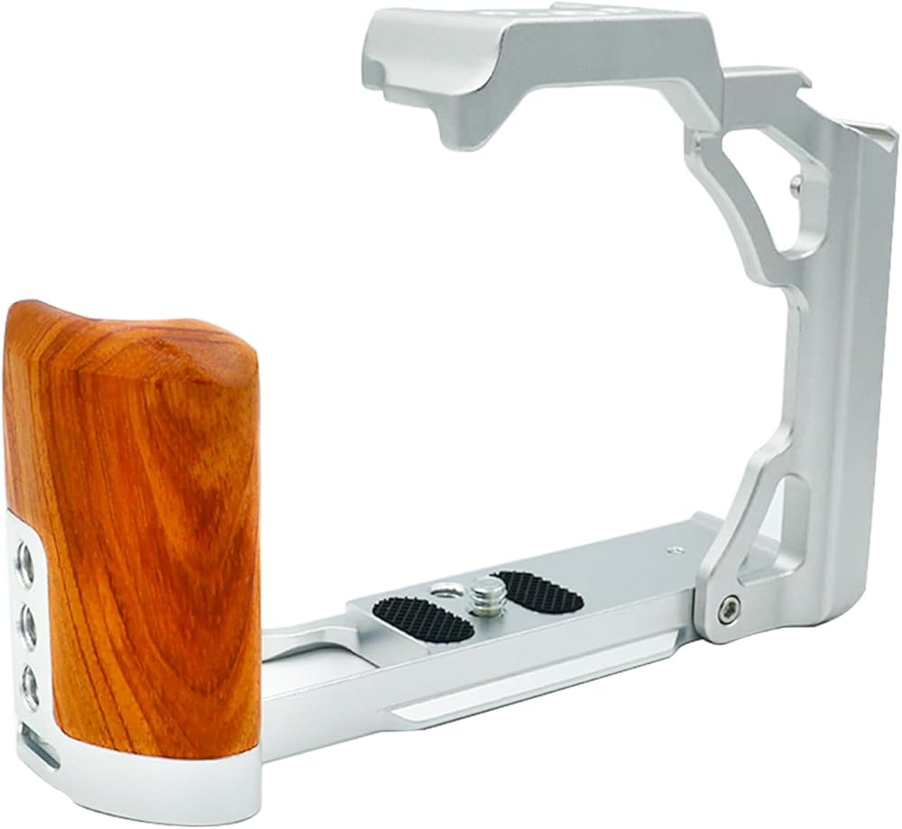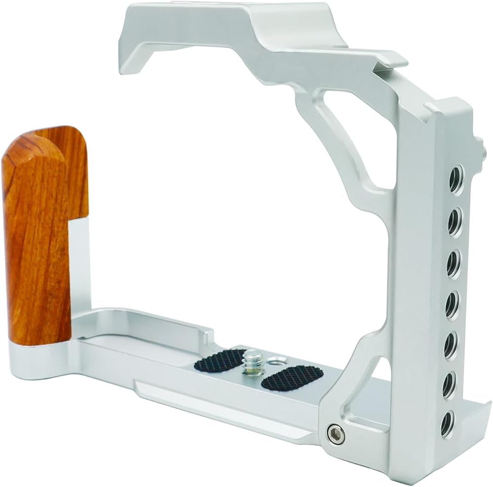 【Wooden handle, comfortable grip】The cage is made of high-quality wood and aluminum alloy, designed according to ergonomics. The combination of silver and brown is more unique in style. The bracket is fixed by a 1/4 "-20 screw at the bottom, and the camera can be double fixed with the accompanying anti deflection lock to further prevent deflection.