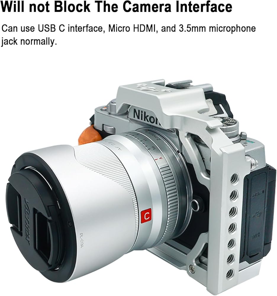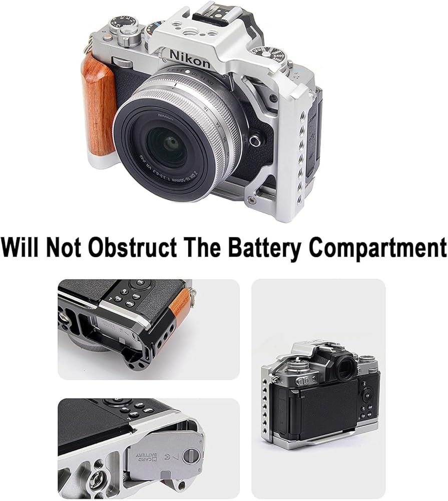 【Perfect match with Zfc】The battery compartment at the bottom of the rack has increased space, making it easy to replace storage cards. The fixed frame will not interfere with the use of buttons, card slots, battery cases, and flip screens. Reserve Camera Shoulder Strap holes at the bottom.