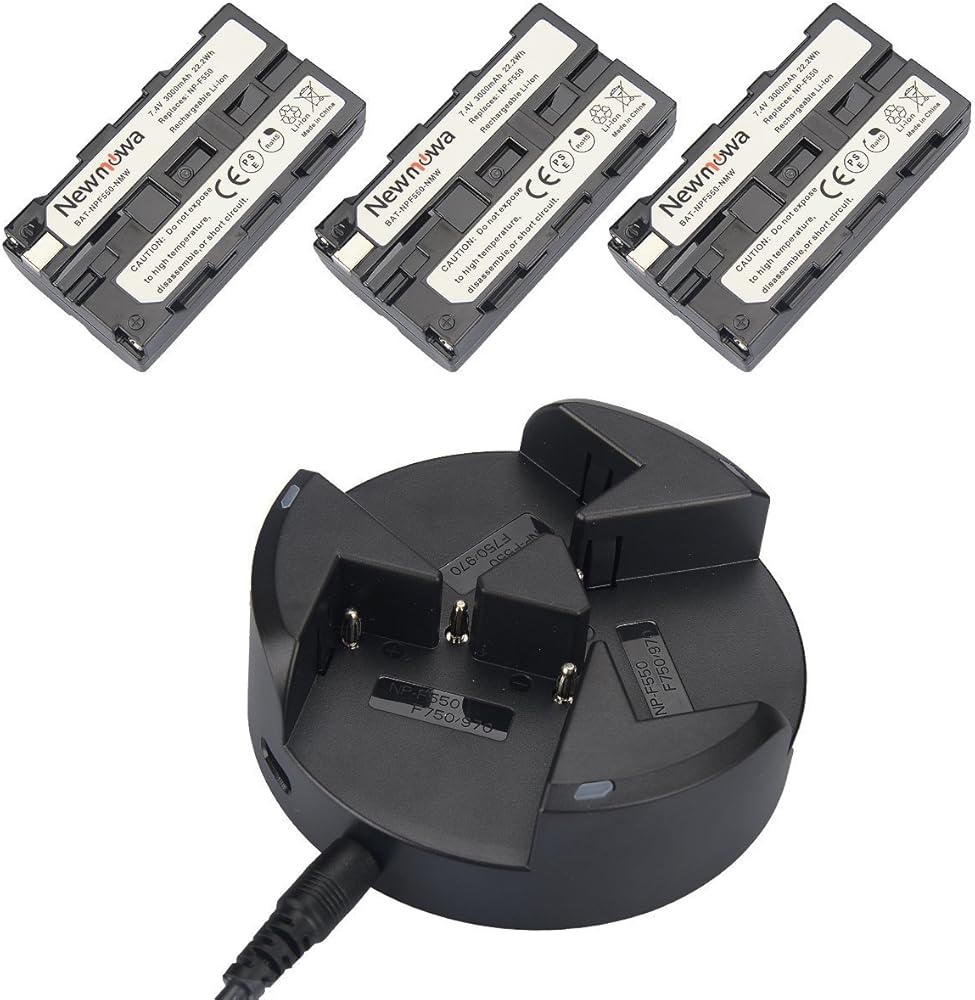 بطارية بديلة NP-F550 نيو موا (عبوة من 3 قطع) ومجموعة شاحن 3 قنوات لسوني NP-F550 وسوني CCD-SC55 TR516 TR716 TR818 TR910 TR917