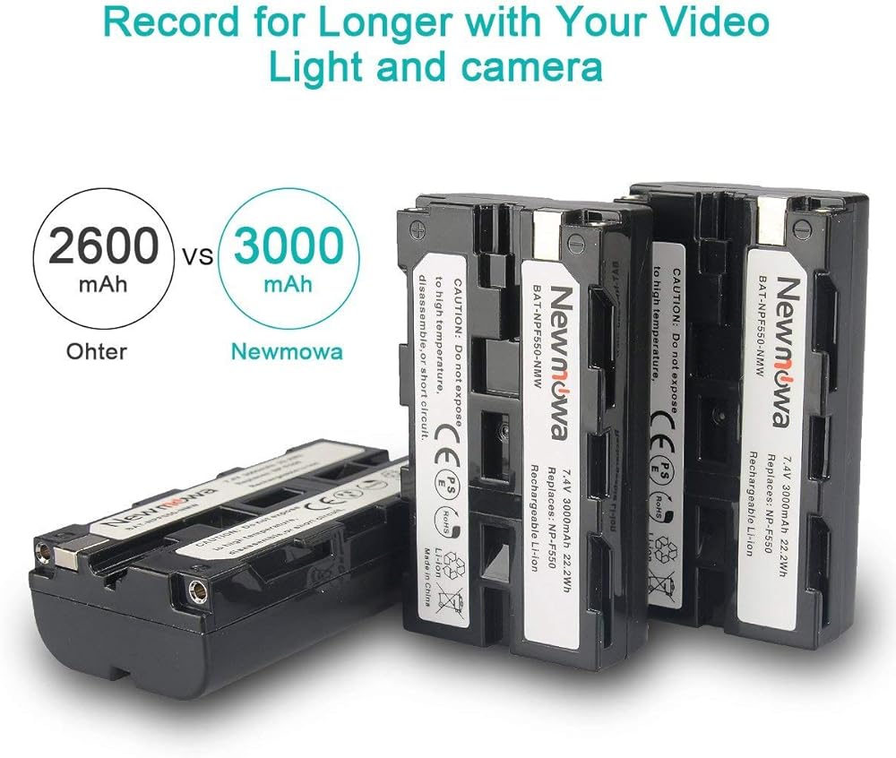 بطارية بديلة NPF550 نيو موا (3 عبوات) ومجموعة شاحن 3 قنوات لسوني NPF550 وسوني CCDSC55 TR516 TR716 TR818 TR910 TR917