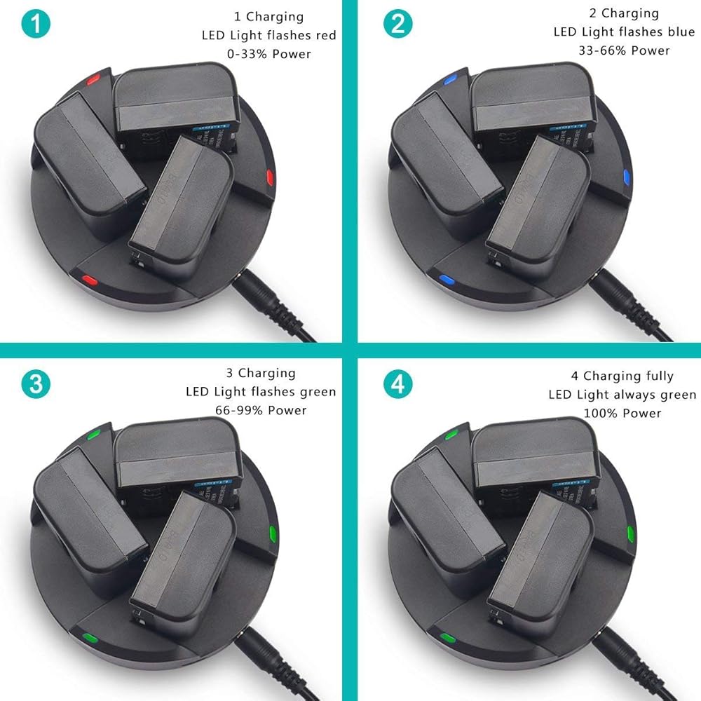 • السعة الدقيقة: تتميز كل بطارية بقوة 7.4 فولت، 3000 مللي أمبير في الساعة. ثلاث مرات وقت تشغيل الكاميرا مع حزمة احتياطية كاملة بما في ذلك ثلاث بطاريات بديلة وشاحن ثلاثي القنوات مع كابل تيار متردد