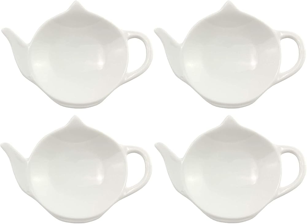 قواعد اكواب شاي من السيراميك الابيض مع مساند للملاعق، مجموعة من 4 قطع من حامل اكياس الشاي الكلاسيكية