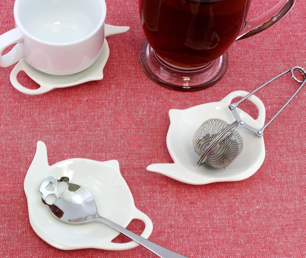 • سيراميك عالي الجودة: قواعد أكواب أكياس الشاي الخاصة بنا مصنوعة من السيراميك عالي الجودة -- لا البلاستيك الذي قد يتلطخ بالشاي.