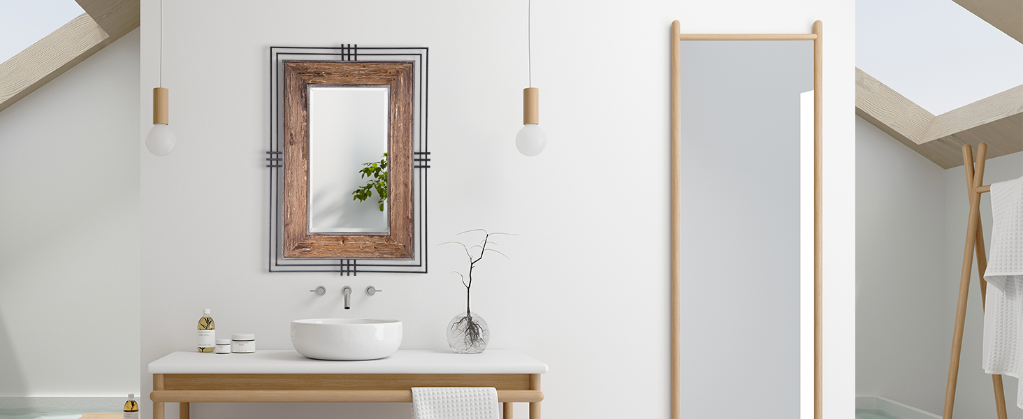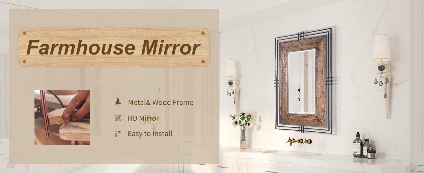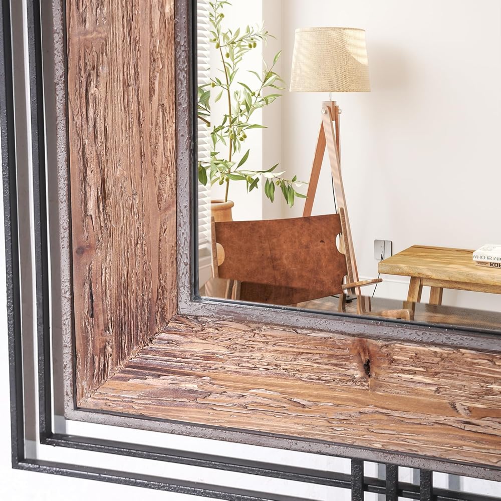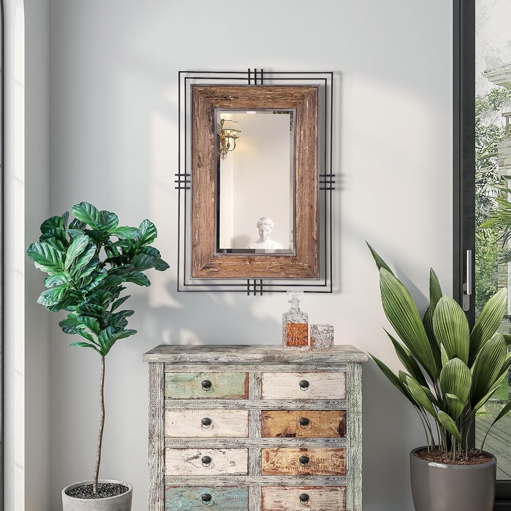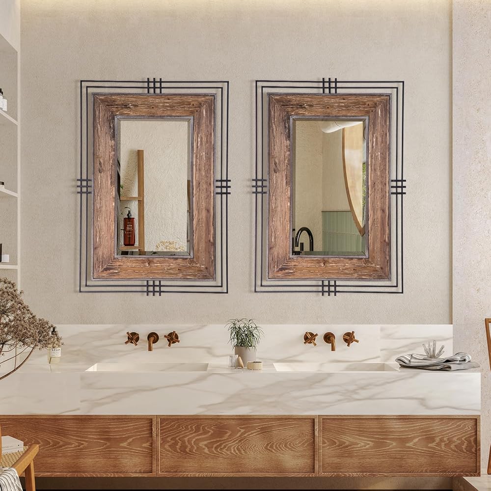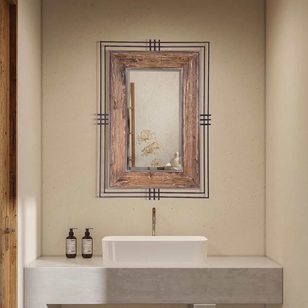 أنيق ولافت للنظر: حدود خشبية باللون الأسود الكلاسيكي مع لمسة ريفية رقيقة. من المؤكد أن مرآة الحائط ذات الإطار الخشبي ستجعل حمامك أو الغرف الأخرى بمثابة زينة على الكعكة.