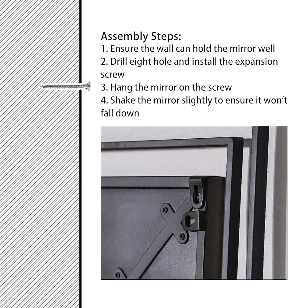 سهولة التركيب: يأتي المستطيل الأسود مع مشابك ومسامير تعليق معززة على شكل حلقة، وهو جاهز للتركيب على الحائط عموديًا أو الاستناد على الحائط.