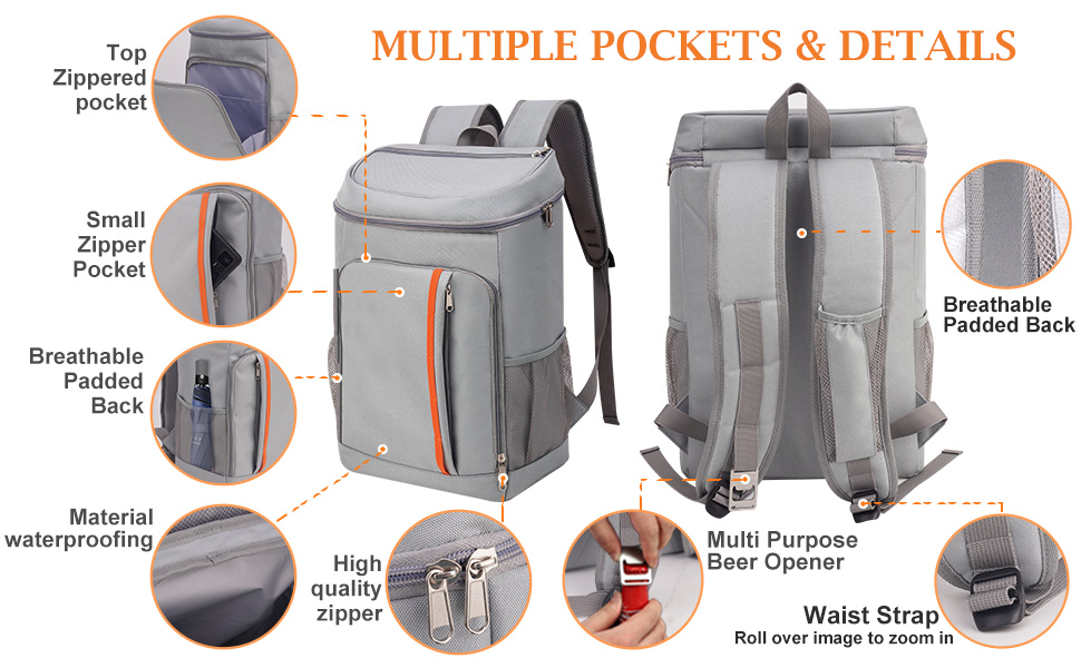 • 🧳【تخزين متعدد الطبقات بتصميم متعدد الجيوب】- تحتوي حقيبة التبريد المعزولة على حجرة رئيسية معزولة لتبريد المشروبات والحفاظ على الطعام طازجًا. جيب أمامي واسع بسحاب لأدوات المائدة وفتاحة الزجاجات وغيرها من الملحقات. جيب أمامي إضافي بسحاب يحمل هاتفك ومفاتيحك ومحفظتك وإكسسوارات السفر. حقيبة ظهر خارجية ناعمة ومبردة مع جيبين شبكيين جانبيين للنبيذ والزجاجات والمظلات. تلبية احتياجات السفر الخاصة بك.