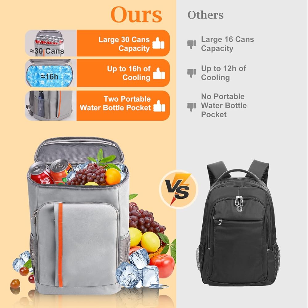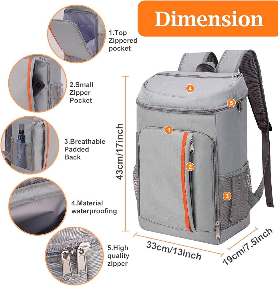 حقيبة ظهر تبريد معزولة مقاومة للماء 30 علبة، مبردات حقيبة ظهر معزولة كبيرة مضادة للتسرب، حقيبة تبريد الشاطئ للرجال والنساء إلى الشاطئ والغداء والنزهات والتخييم والمشي لمسافات طويلة ورحلات السفر والسفر