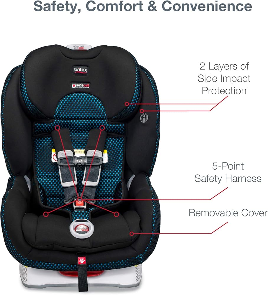 يتميز مقعد السيارة القابل للتحويل المحكم مع تدفق بارد بنسيج مبتكر ويوفر سلامة أنيقة. في بريتاكس نقوم بجعل الأمان رائعًا وسيتمتع طفلك برحلة مريحة بفضل تقنية التدفق الرائع. يعمل النسيج الشبكي جيد التهوية على تحسين تدفق الهواء كما يضمن المقعد المبطن ومسند الرأس المزيد من الراحة، إلى جانب 7 أوضاع إمالة للخارج. سهل التثبيت لمقعد السيارة حيث يتم ربط حزام الأمان بفضل نظام التثبيت الضيق للنقر. في مقعد السيارة في بوليفارد ، أنت محاط بأمان. يتميز هذا المقعد القابل للتحويل بنظام الحماية من الصدمات للخلايا الآمنة من بريتاكس ببراءة اختراع، والذي يتضمن إطارًا من الفولاذ، وقاعدة ممتصة للطاقة، وحبل على شكل حرف V لتقليل دوران المقعد وغرز تحرير المراحل التي تبطئ وتقلل من الحركة للأمام في حالة حدوث اصطدام. صممت بريتاكس مقعد السيارة المحكم للشارع مع طبقتين قويتين من امتصاص الطاقة الجانبية؛ غطاء مبطن بالفوم العميق وحماية الرأس ستحمي طفلك من الصدمات الجانبية. حزام أمان قابل للتعديل 14 وضعًا ينمو مع طفلك ويمكنك تغيير ارتفاع المقعد بضغطة زر فقط دون الحاجة إلى إعادة خيط. اطمئن البال مع العلم بأن سرج طفلك يقع في نطاق ضيق مناسب. مع صوت نقرة بفضل مؤشر السرج الدافئ، ستعلم أنه تم تعديله بشكل صحيح. يمكن استخدام مقعد السيارة في الشوارع الخلفي الذي يصل إلى 18.1 كجم، ووضعية المواجهة للأمام 20 كجم و29.5 كجم، وارتفاع الطفل الذي يقف 124.5 سم أو أقل. أبعاد مقعد السيارة 58.42 سم طولاً × 47.02 سم عرضًا × 59.65 سم ارتفاعًا. ارتفاع فتحة السرج 14 وضعًا من 21.23 سم إلى 49.25 سم. معتمد من إدارة الغذاء والدواء الأمريكية. عمق منطقة المقعد 26.67 سم وعرض منطقة المقعد 29.21 سم.